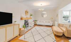 This generous lounge has a bay window overlooking the rear garden, open plan living to the kitchen / breakfast room and a gorgeous fireplace with multi-fuel burner providing that cosy winter warmth.