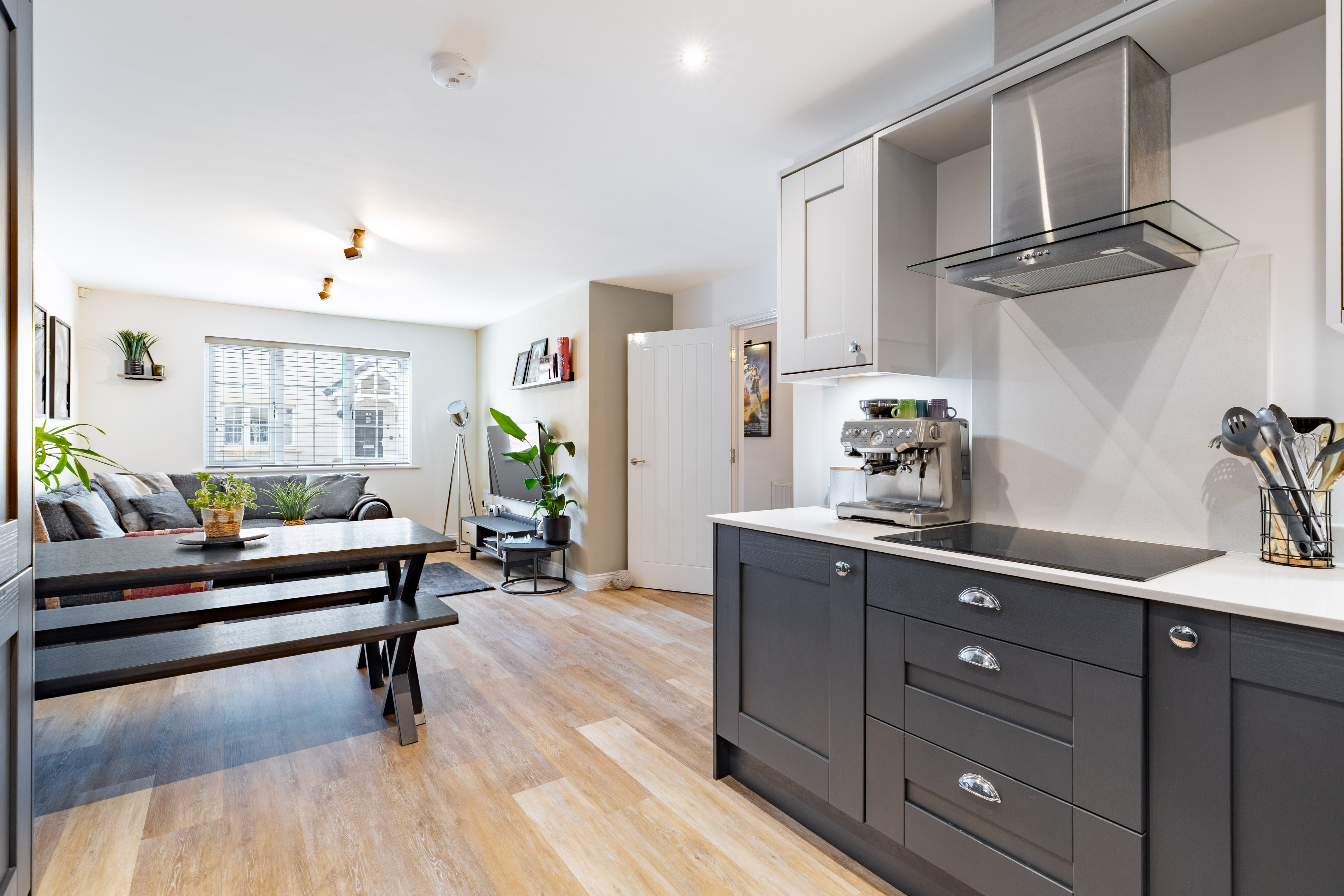 - Spacious open-plan kitchen, living and dining area with granite worktops