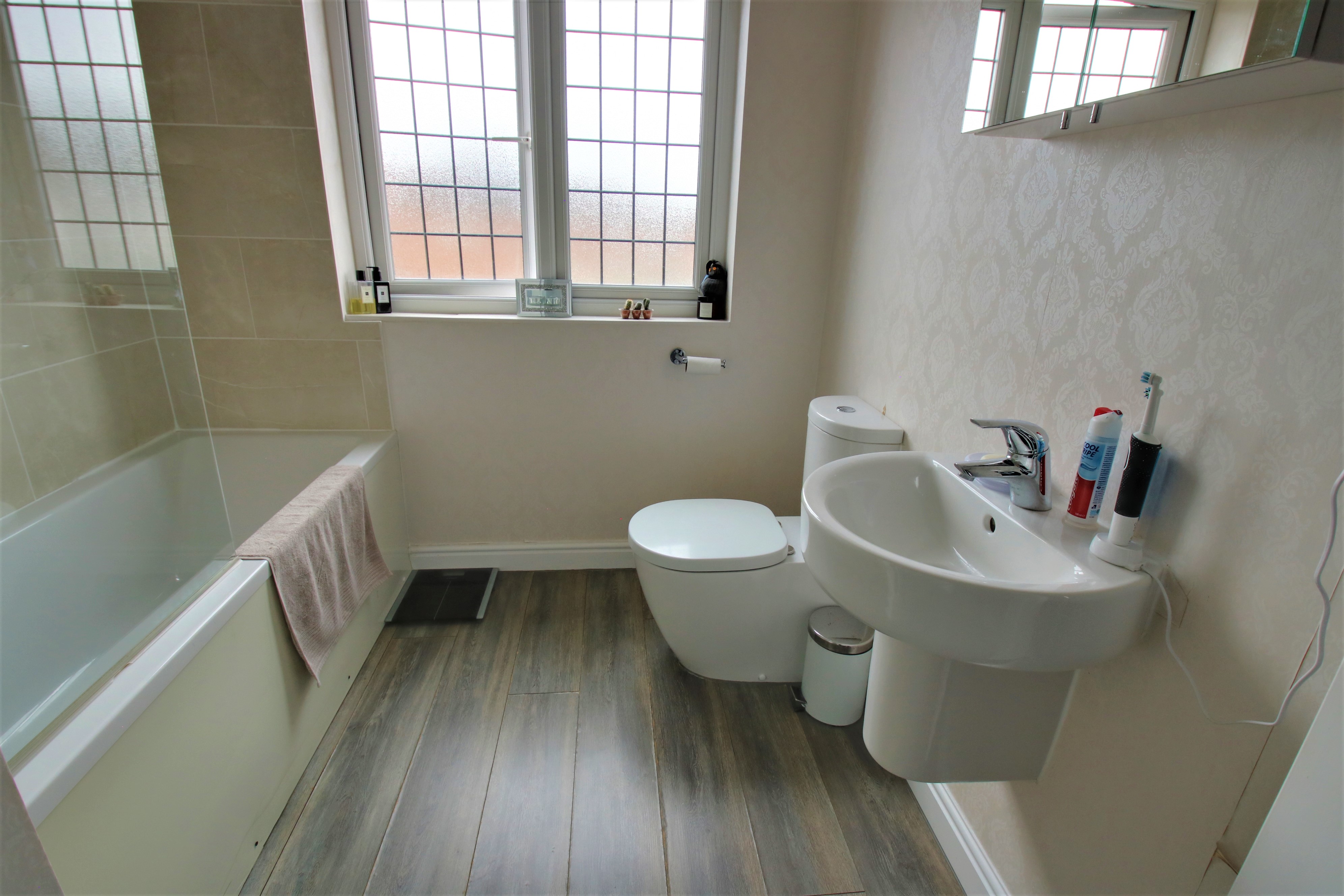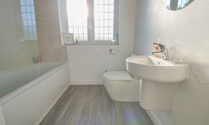 Front facing upvc double glazed window, three piece suite, splash back tiling, laminate flooring and heated towel rail.