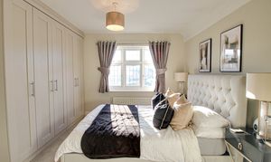Front facing upvc double glazed window, fitted wardrobes and radiator.