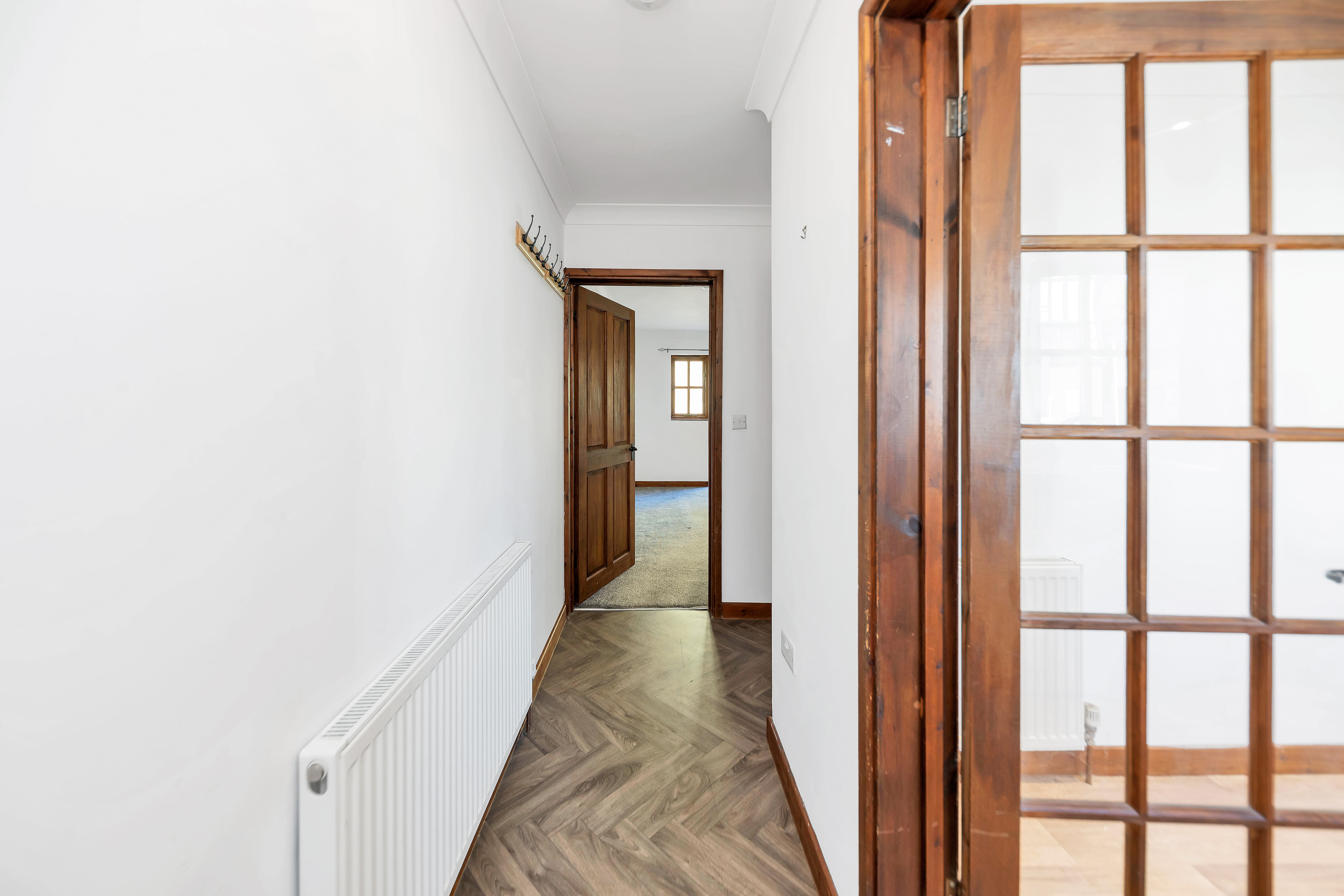 This spacious cottage enjoys a tidy and pleasant frontage and excellent space for potted plants. Upon stepping inside, the entrance hallway is bright and welcoming, with parquet wood flooring, pendant lighting, storage for coats, and access through to the downstairs living space, including a cloakroom WC.