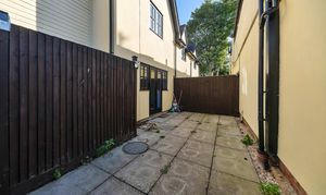 Outside, to the rear, the courtyard garden is a lovely low-maintenance space, fully enclosed by fencing and offering a pleasant spot to sit and relax after a busy day. It is laid to paved patio, providing ample space for garden furniture, potted plants, entertaining guests and enjoying meals al fresco.