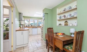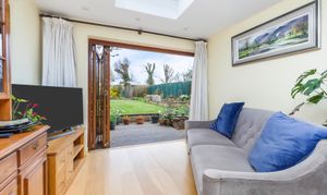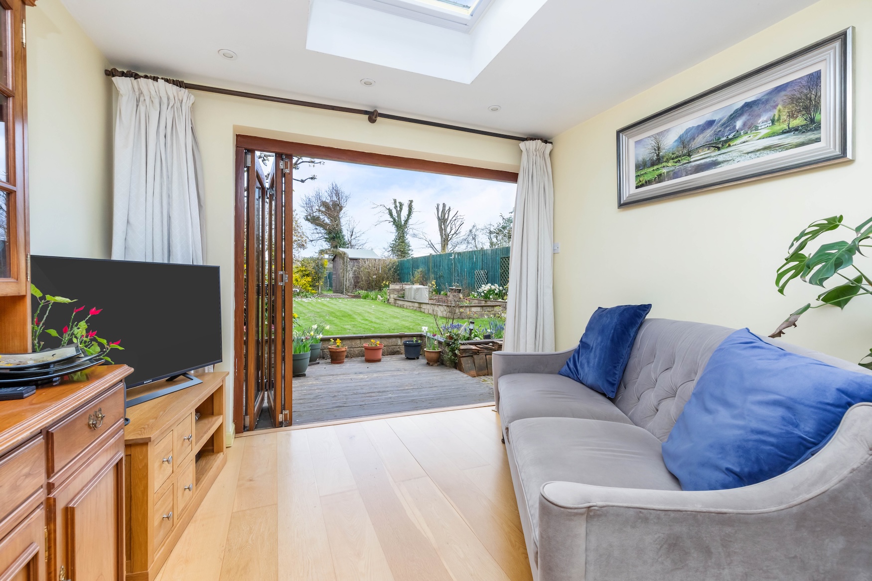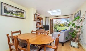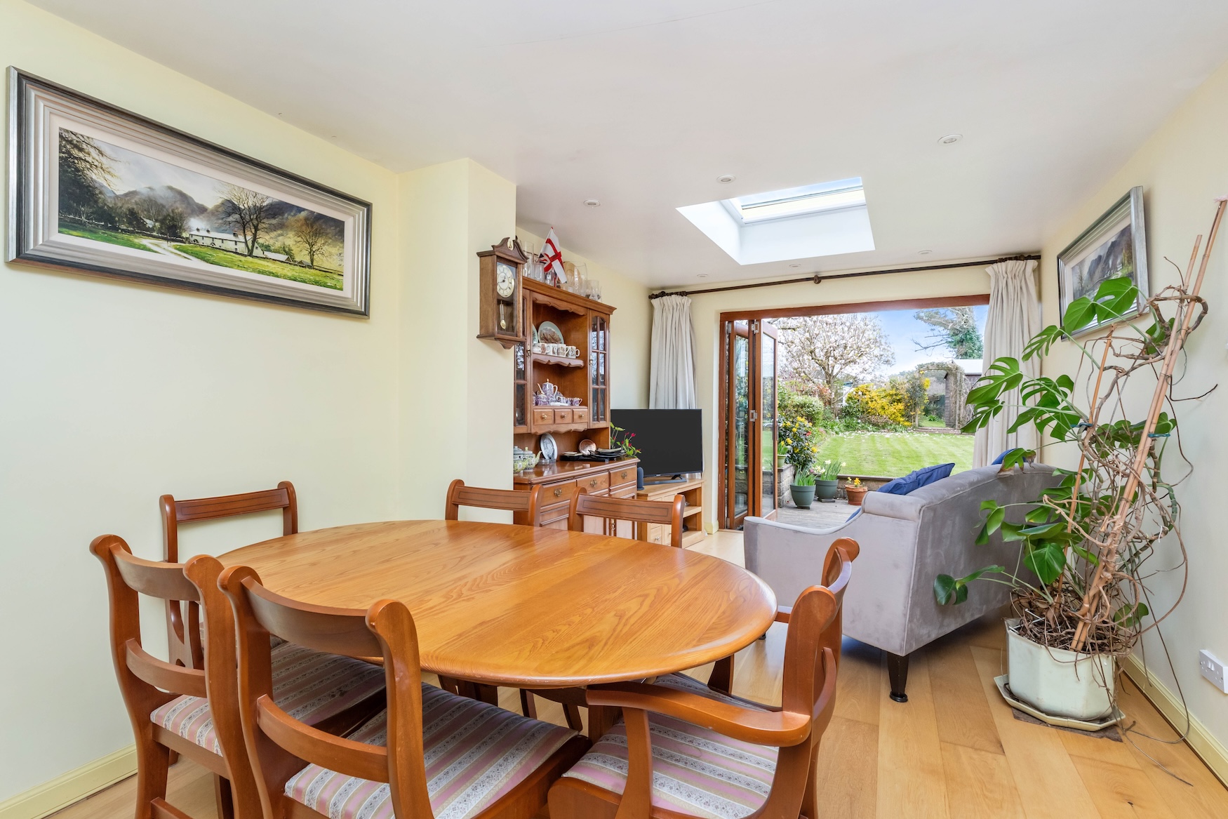 The accommodation comprises: entrance hallway, bay fronted sitting room with open fire, and great sized dining/family room with under floor heating and bi-folding doors onto the garden.