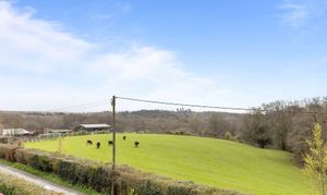 The 114’ x 32’ rear garden is a particular feature with amazing outlook over adjoining paddocks. The garden is predominantly lawned with paved patio, decked seating area, 2 sheds, greenhouse with power and log store.