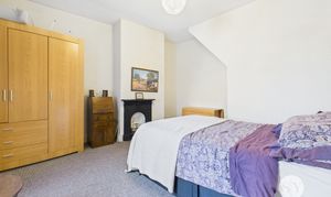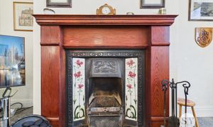 Carpet flooring, original feature fireplace, panel radiator, UPVC double glazed window