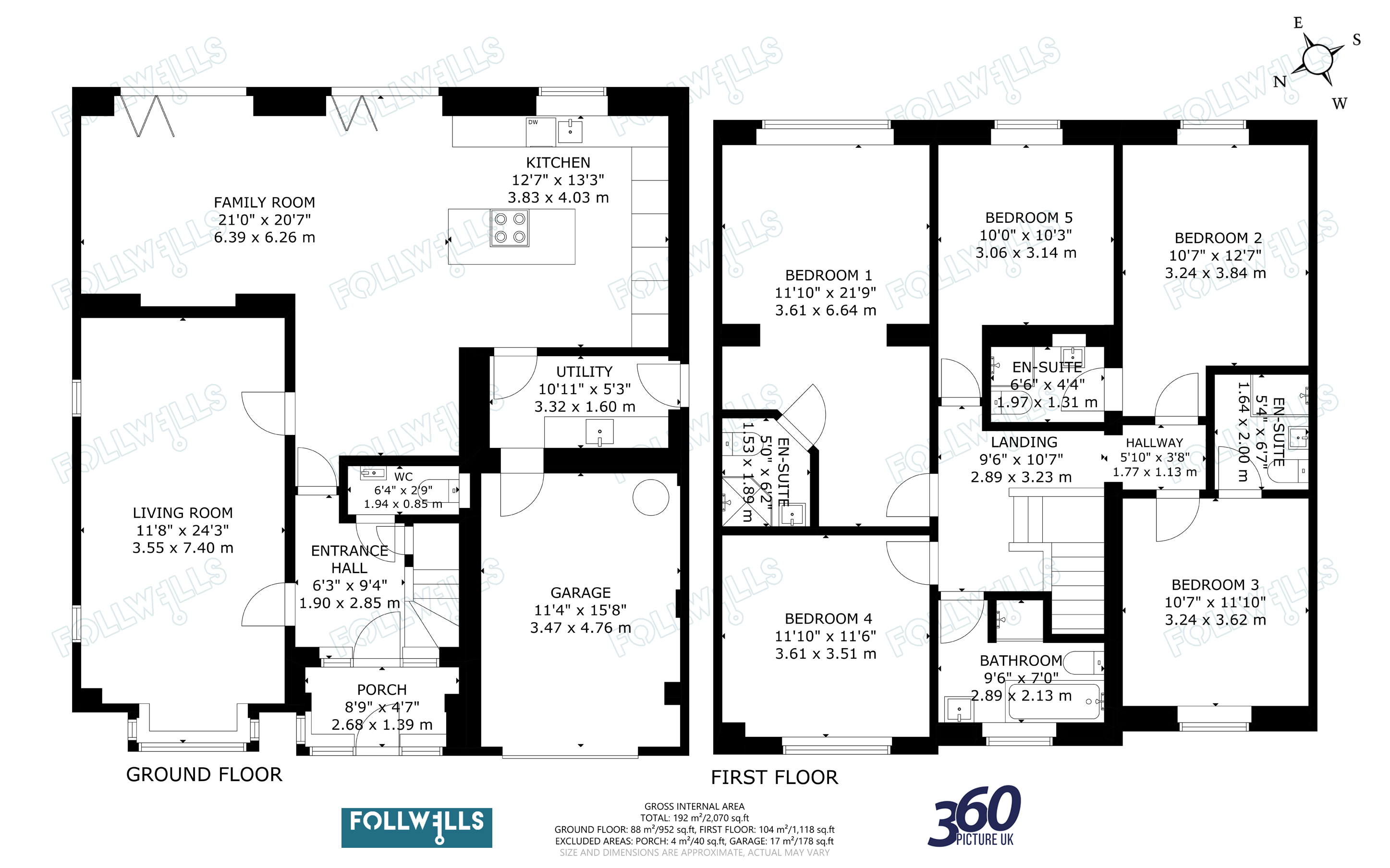The spacious family accommodation continues to the first floor, accessed from the landing area with loft hatch having pulldown ladder. There are five double bedrooms with the three principal bedrooms all having shower room facilities with large format tiling and similar style suites to include mains thermostatic control raindrop showers with separate spray. In addition there is a separate four piece family bathroom fitted with a classic style suite to include bath and separate tiled shower cubicle.