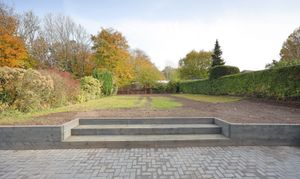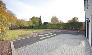 The property is approached and situated to the near end of a private and partially elevated no through road with wide vehicle access onto a block paved frontage providing parking for several vehicles. Gated access to either side of the property continues with block paving extending to a good sized rear patio with central steps up to a substantial lawn garden with hedge/shrub borders and fencing to rear boundary (to be erected).