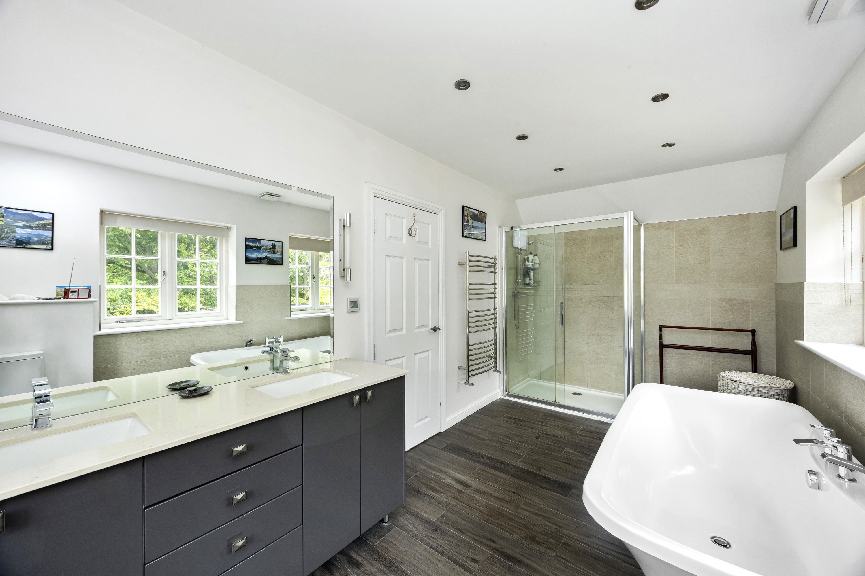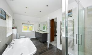 The first floor boasts a spectacular principal suite, complete with luxurious fittings, while five additional bedrooms are complemented by five spa-like bath and shower rooms, ensuring comfort and convenience for every member of the household. The interior is finished to a high standard throughout, with a focus on both style and functionality.