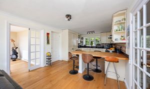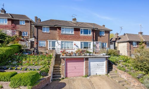 A large driveway provides parking for multiple vehicles and leads to a double garage, which is equipped with an EV charging point (perfect for electric vehicle owners). The home is situated at the gateway to the South Downs, offering exquisite views over rolling hills to the north and the sea to the south, creating a peaceful rural setting that remains well connected to the amenities of Rottingdean village and the vibrant city of Brighton and Hove.
