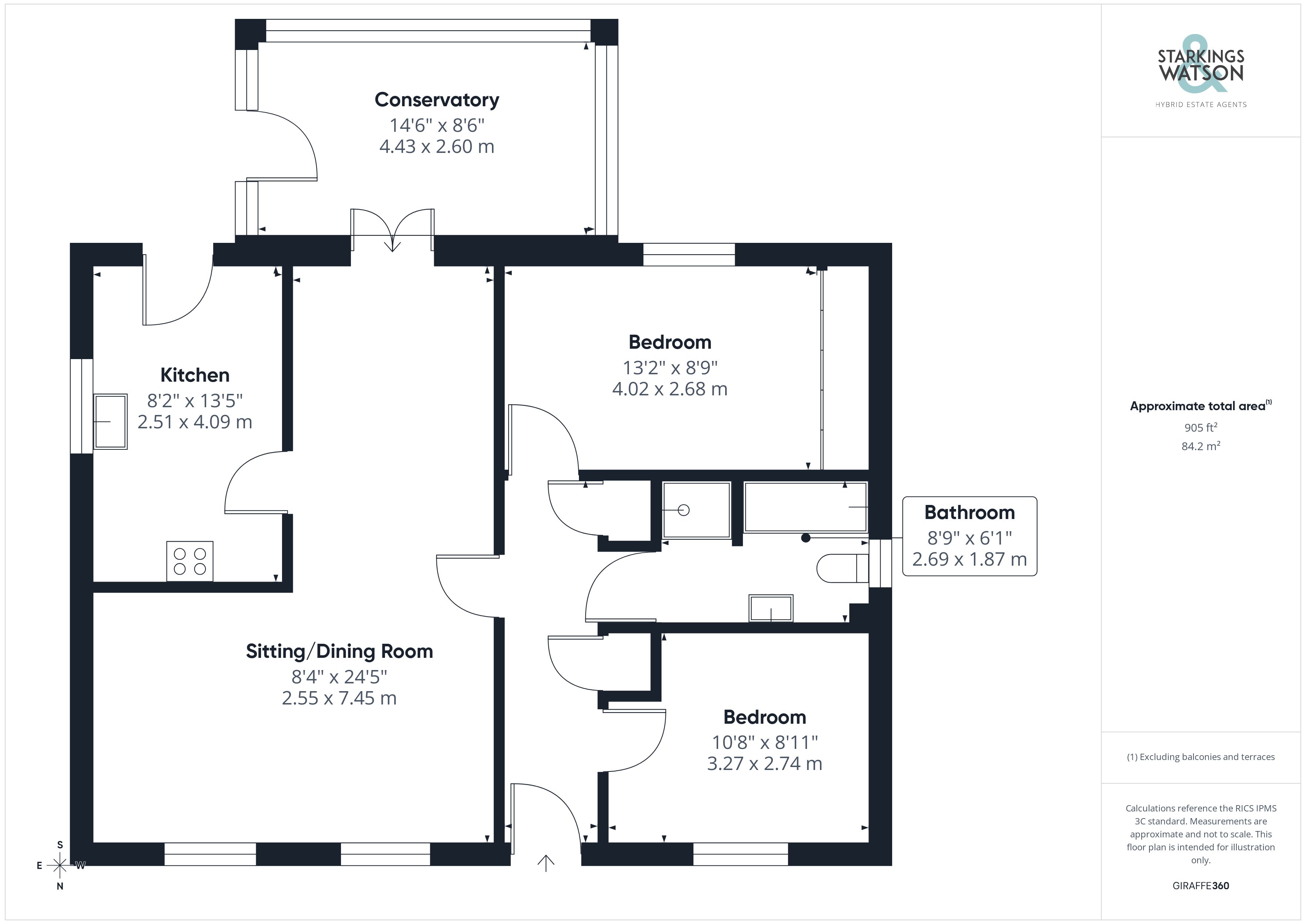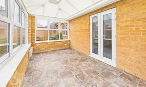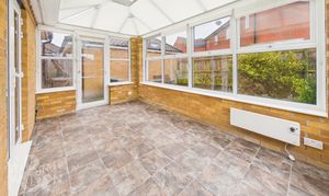 Stepping inside, the hall entrance is finished with fitted carpet and twin built-in storage cupboards, with a loft access hatch above and doors leading to the bedroom and living accommodation. The main living space forms an L-shaped sitting/dining room with a feature fireplace creating a focal point to the room, with twin front facing windows and patio doors opening up to the conservatory. The kitchen offers a fully fitted range of wall and base level units with integrated cooking appliances including an inset electric ceramic hob with stainless steel splash-back and extractor fan, along with a built-in eye level electric oven. Space is provided for general white goods including a fridge freezer and washing machine, with the dishwasher integrated. Matching up-stands and tiled splash-backs run around the work surface with a side facing window, wall mounted gas fired central heating boiler and door leading out to the rear garden. The conservatory extends the living space with windows to side and rear, and a door leading out to the garden with tiled flooring underfoot. The two bedrooms both lead off the main entrance hall with fitted carpet underfoot and uPVC double glazing, with the larger bedroom including a range of built-in wardrobes to one side. Completing the property is the family bathroom which includes a four piece suite and walk-in shower cubicle, with a thermostatically controlled shower, tiled splash-backs, tiled effect flooring and side facing window.