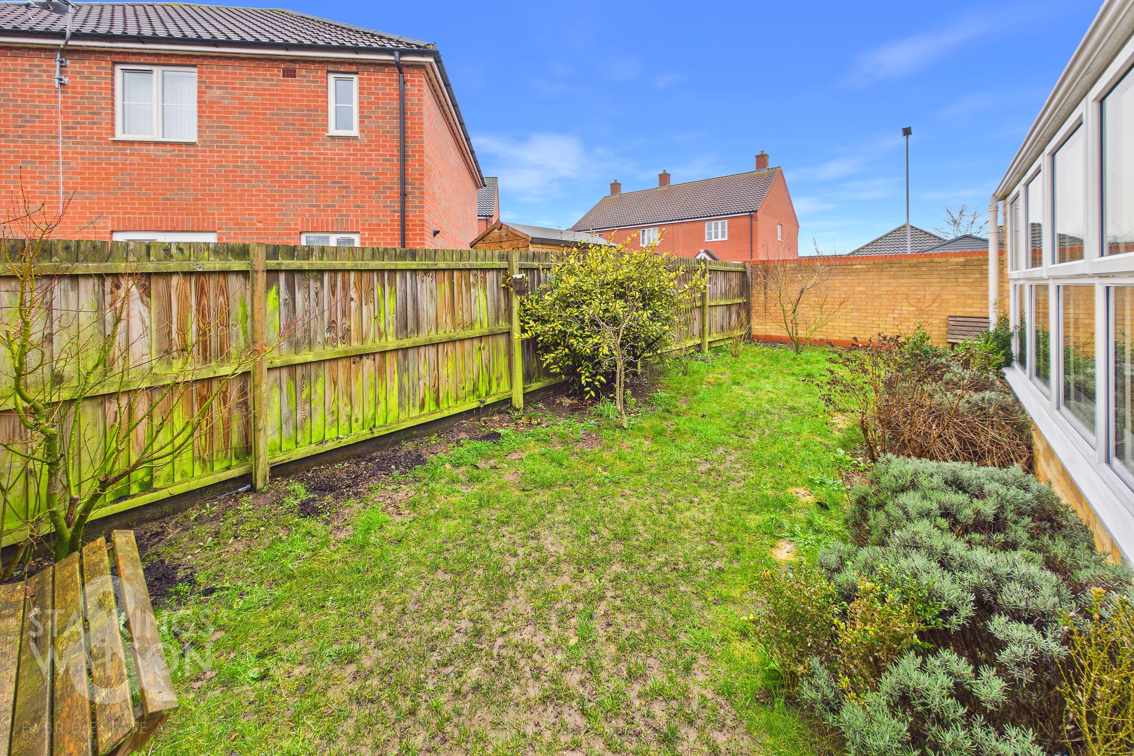 Guide Price £285,000-£300,000. NO CHAIN. This modern DETACHED BUNGALOW presents an excellent opportunity for those seeking a well-appointed home within WALKING DISTANCE to the village centre and with EASY ACCESS to the A47. The property is thoughtfully designed and features a HALL ENTRANCE with STORAGE, spacious 24’ OPEN PLAN L-SHAPED SITTING/DINING ROOM, offering flexible living and entertaining space. The FITTED KITCHEN is equipped with INTEGRATED COOKING APPLIANCES and plenty of STORAGE, while the adjoining 14’ CONSERVATORY provides a tranquil spot to relax and enjoy garden views throughout the year. There are TWO WELL-APPOINTED BEDROOMS, both served by a FAMILY BATHROOM that includes both a BATH and a separate SHOWER cubicle for convenience. The bungalow benefits from gas fired CENTRAL HEATING and double glazing, ensuring comfort and efficiency. The detached GARAGE, accessed from the front via an up and over door, provides secure parking and additional storage above, with power and lighting already installed. The SOUTH-FACING REAR GARDEN is a real highlight, enclosed by timber panel fencing and brick walling for privacy and security.