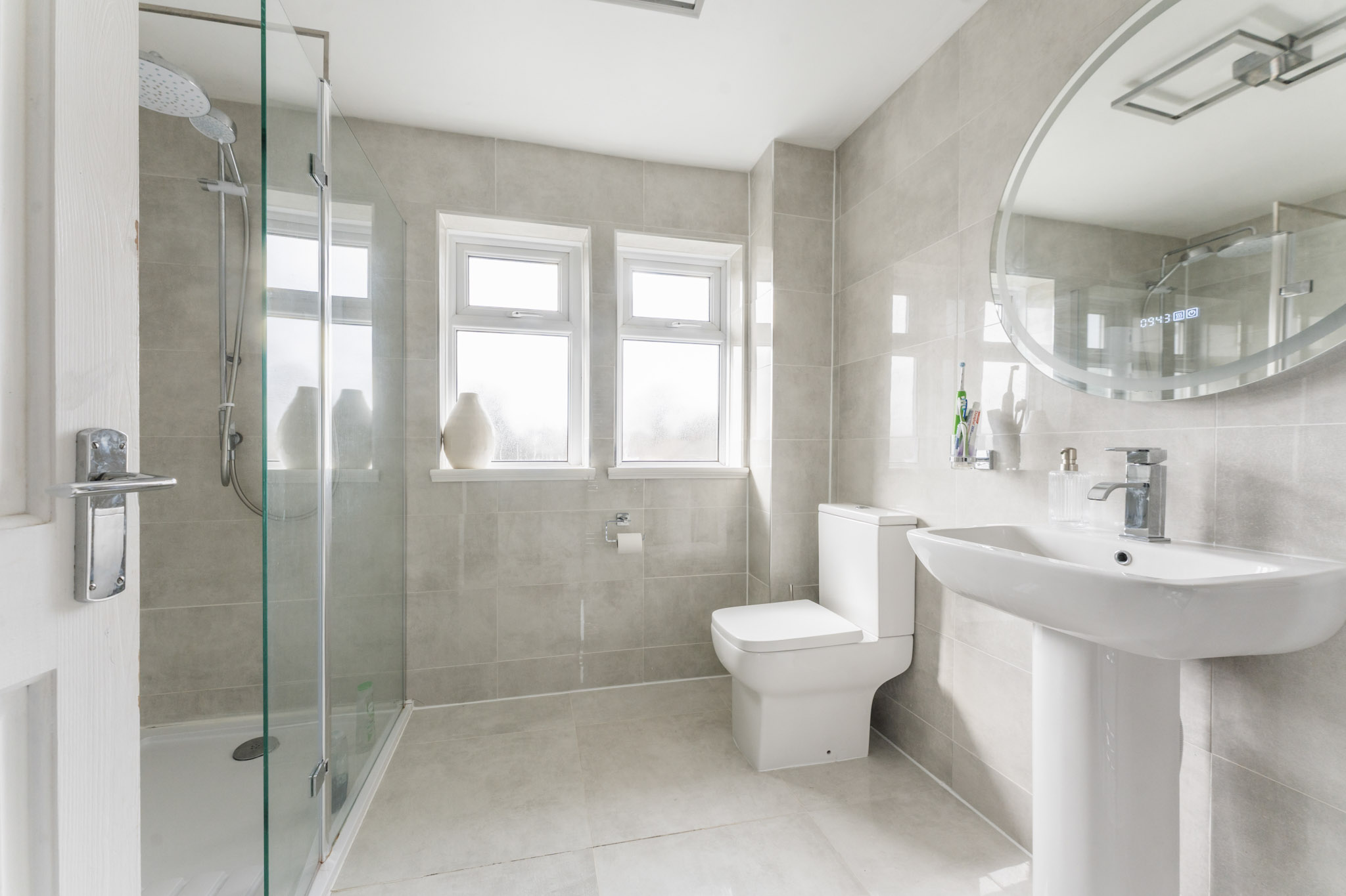Upstairs, three double bedrooms provide comfortable and private retreats, each ready for personal touches. An airing cupboard adds convenient linen storage, while the contemporary shower room features a three-piece suite, quality fittings, and an LED mirror, combining modernity with functionality.