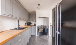 - Kitchen is equipped with stylish Grey cabinetry, quality worktops, a sink/drainer unit, an integrated dishwasher, space for a range cooker and a tall fridge/freezer, along with a breakfast bar unit