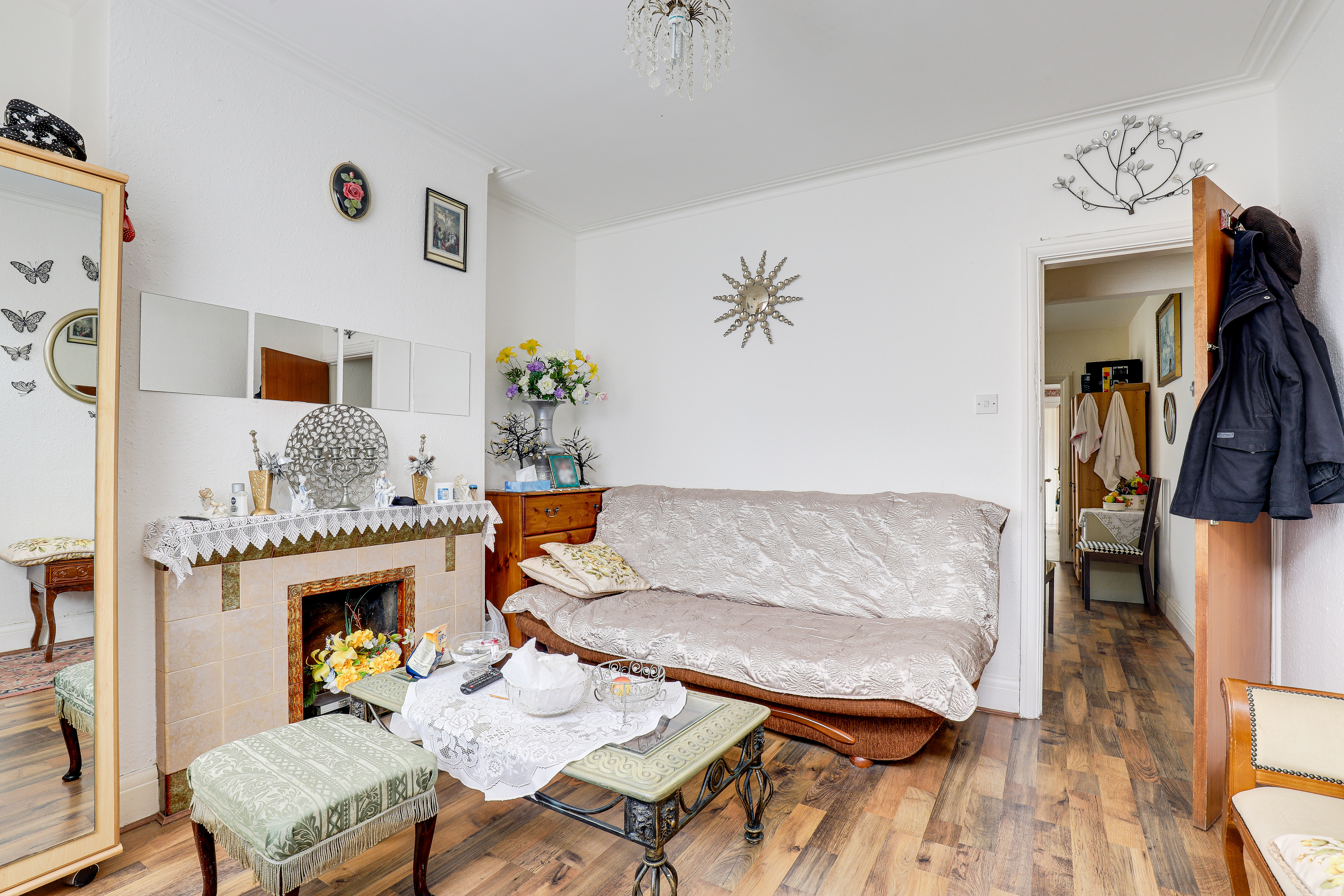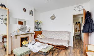 The living room has a UPVC double glazed window to the front elevation, a feature fireplace, coving to the ceiling, a TV point, wood-effect flooring, and a door providing access into the accommodation.