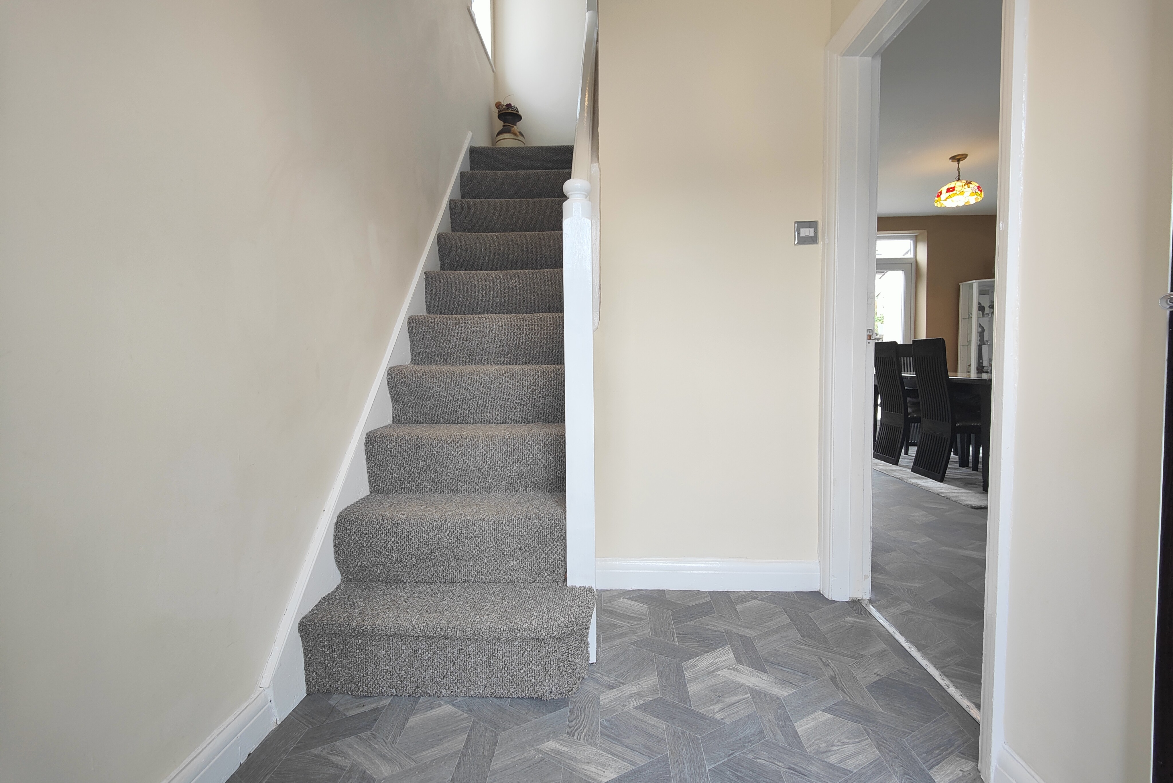 On the first floor are three bedrooms and a modern, three piece bathroom with over bath shower.