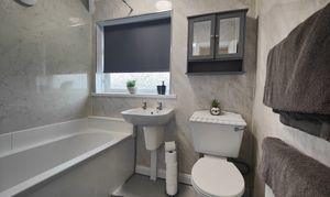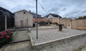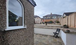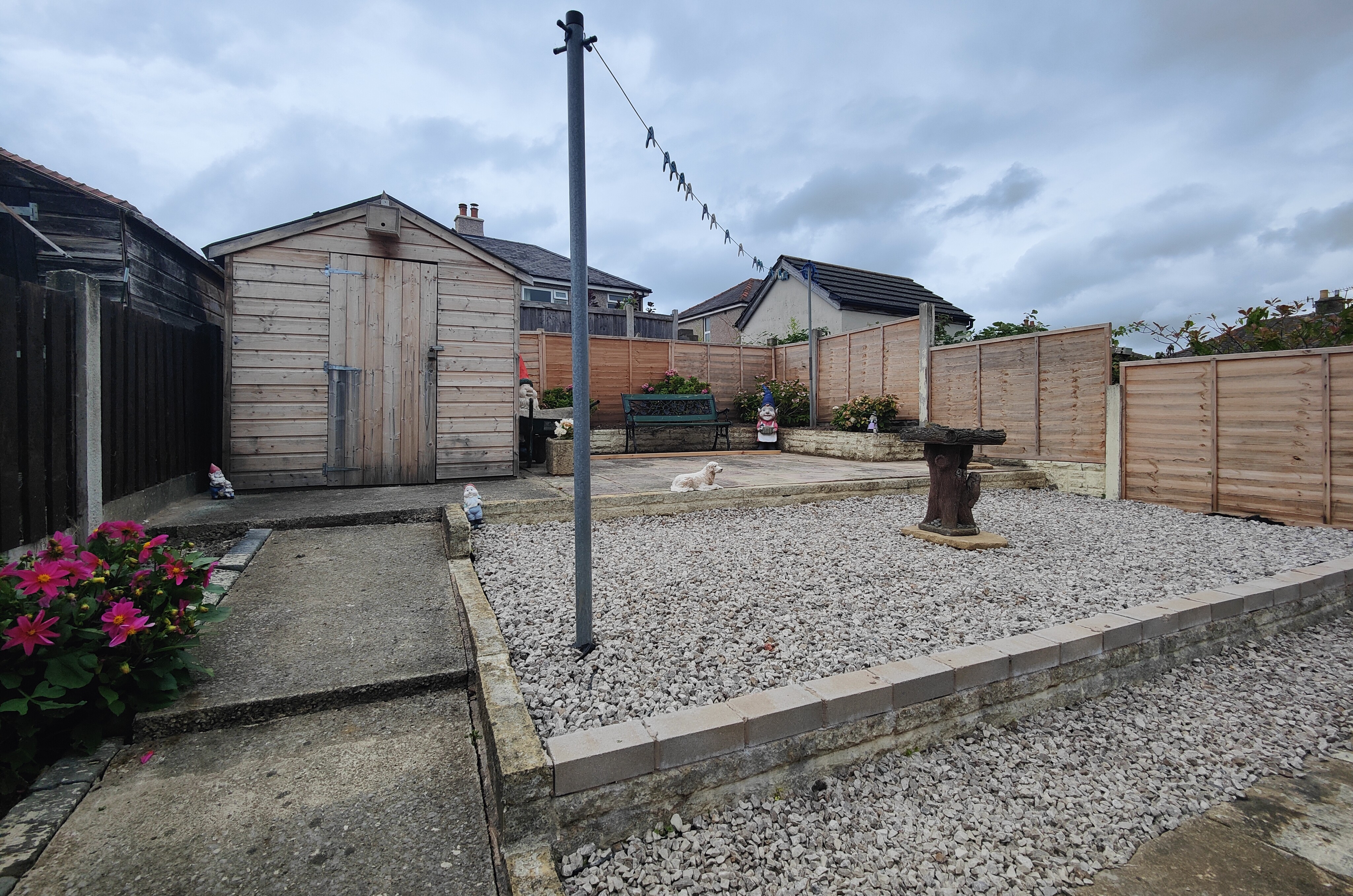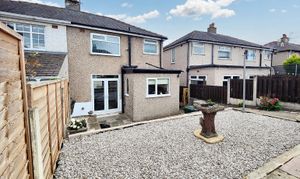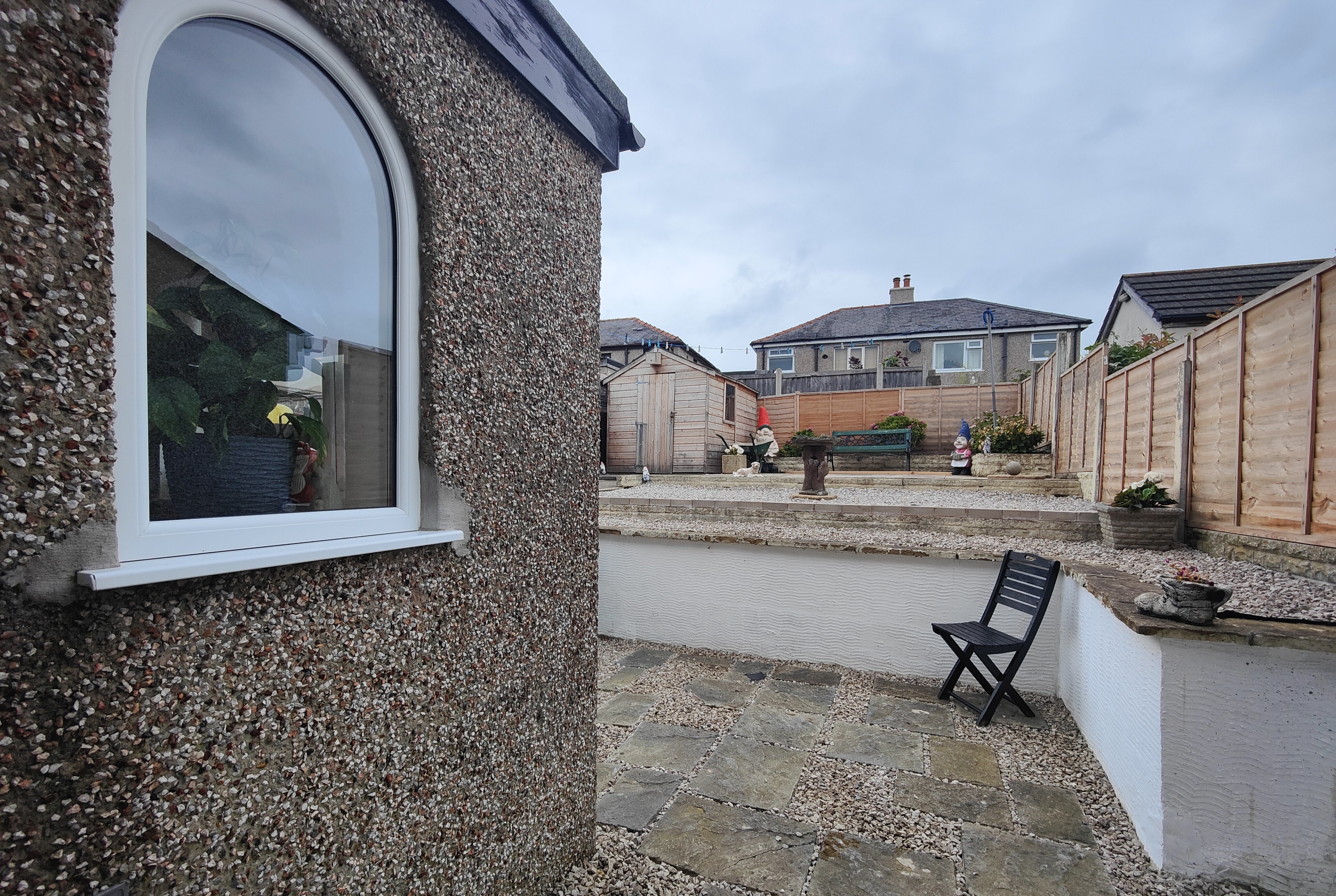 A generous rear garden which has been flagged and landscaped to create a low maintenance, tiered garden. Wooden fenced borders aid privacy and the vendors have a garden shed. With French Doors opening from the living space this garden space is inviting and generous, perfect for long evenings with family and friends.