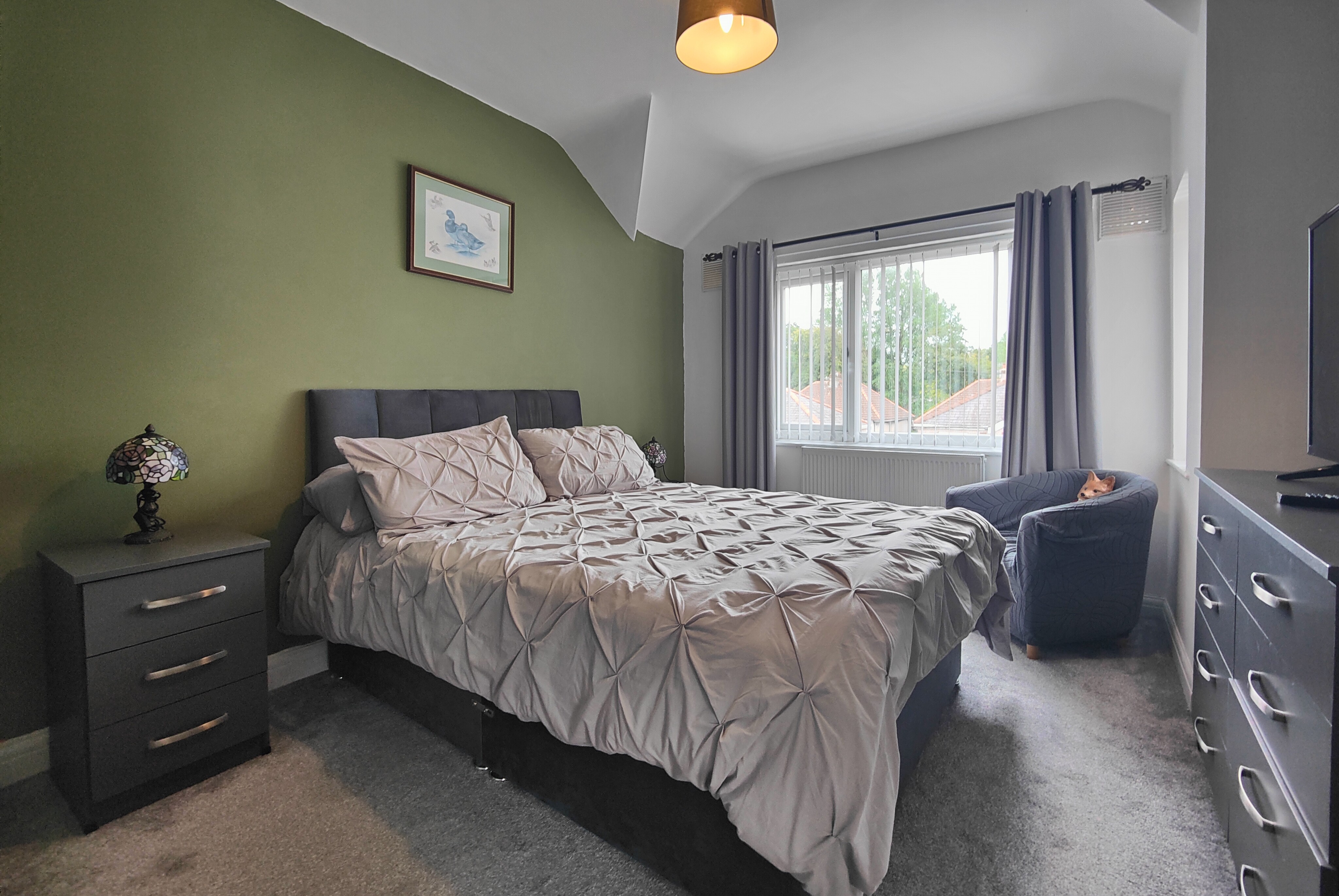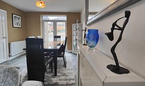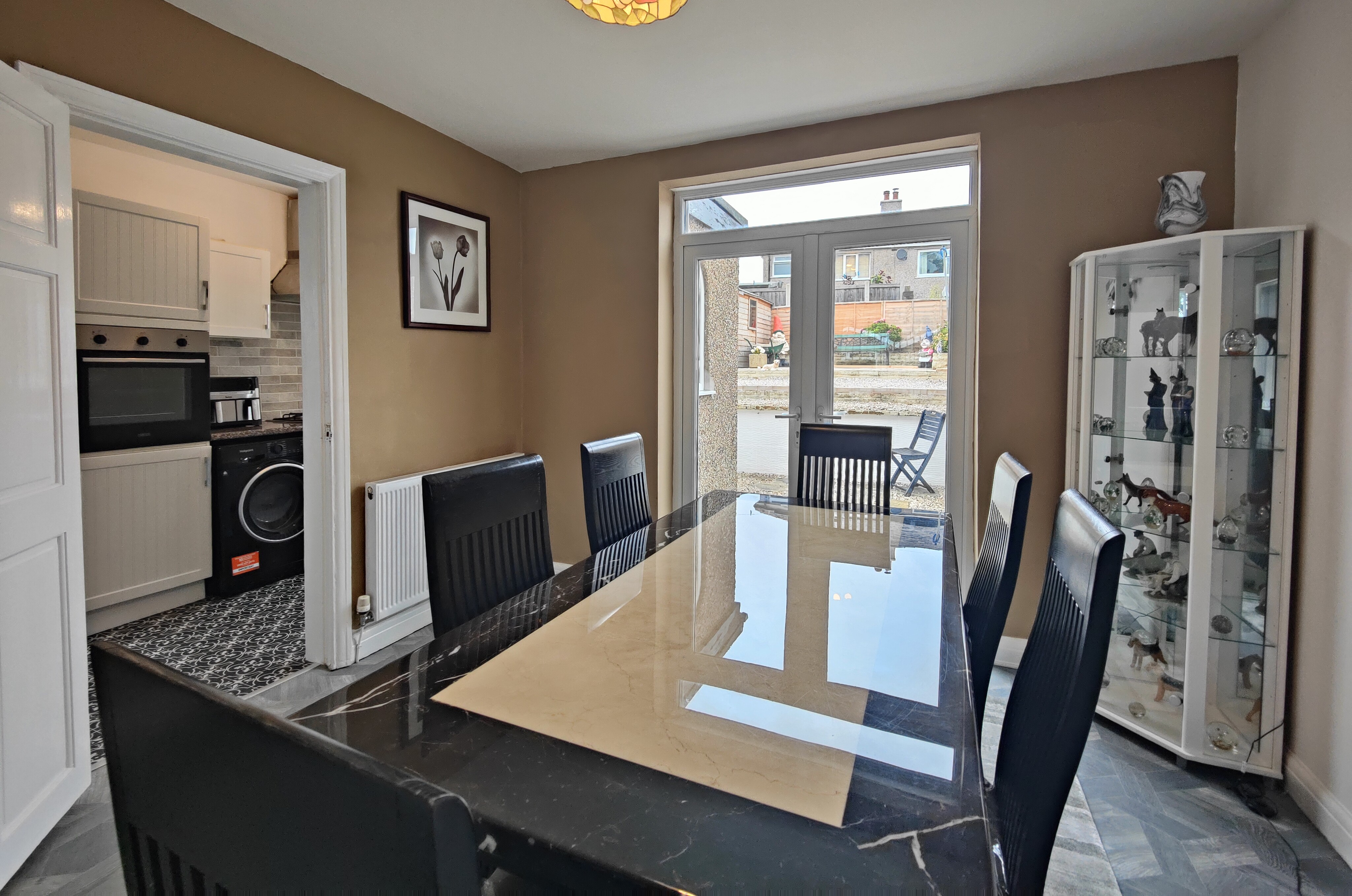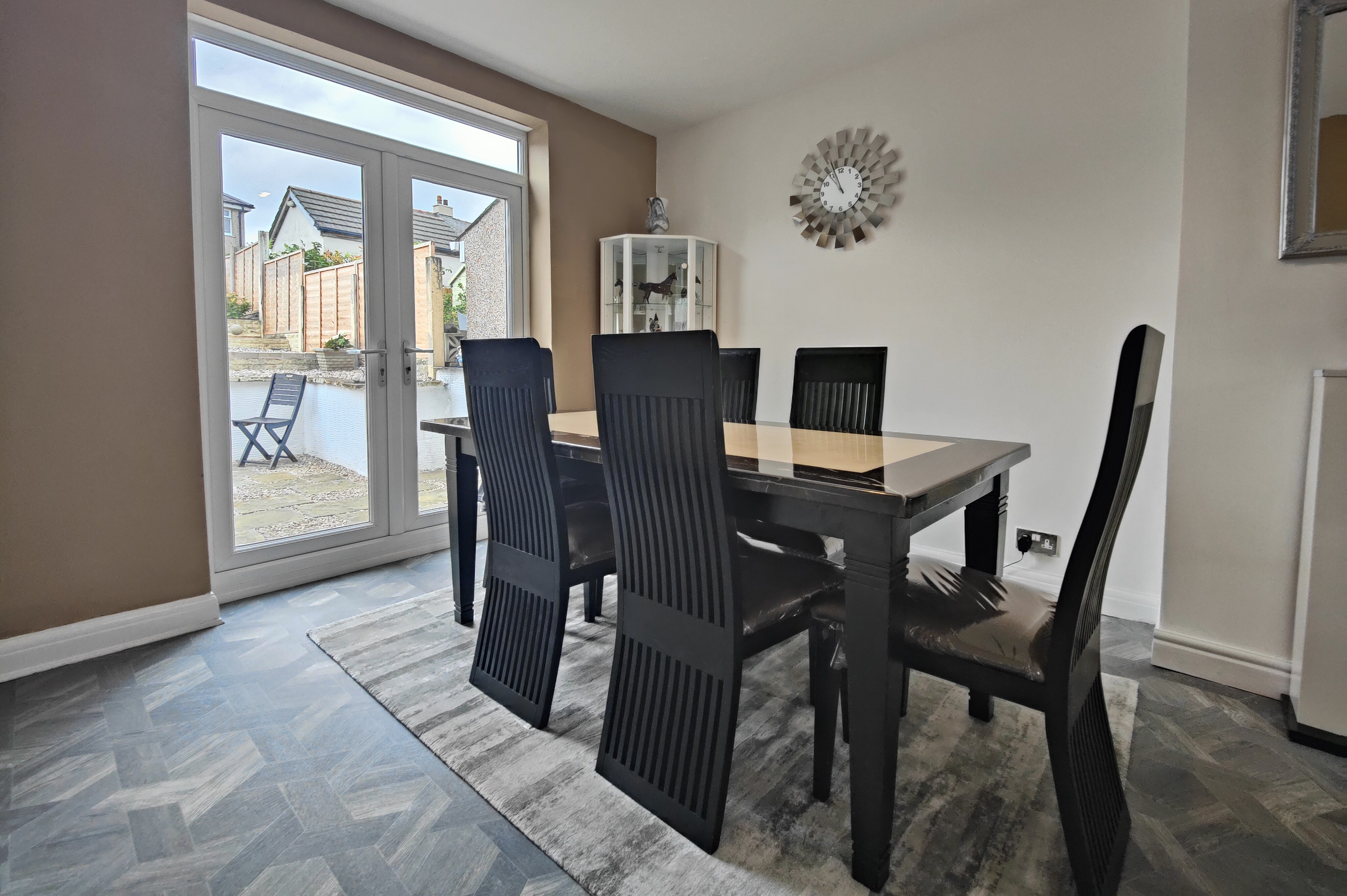 A generous rear garden which has been flagged and landscaped to create a low maintenance, tiered garden. Wooden fenced borders aid privacy and the vendors have a garden shed. With French Doors opening from the living space this garden space is inviting and generous, perfect for long evenings with family and friends.