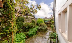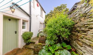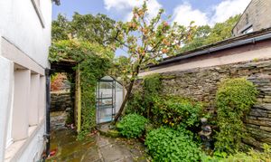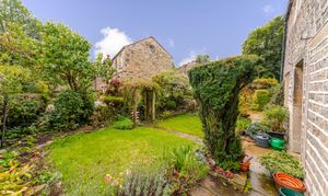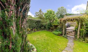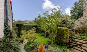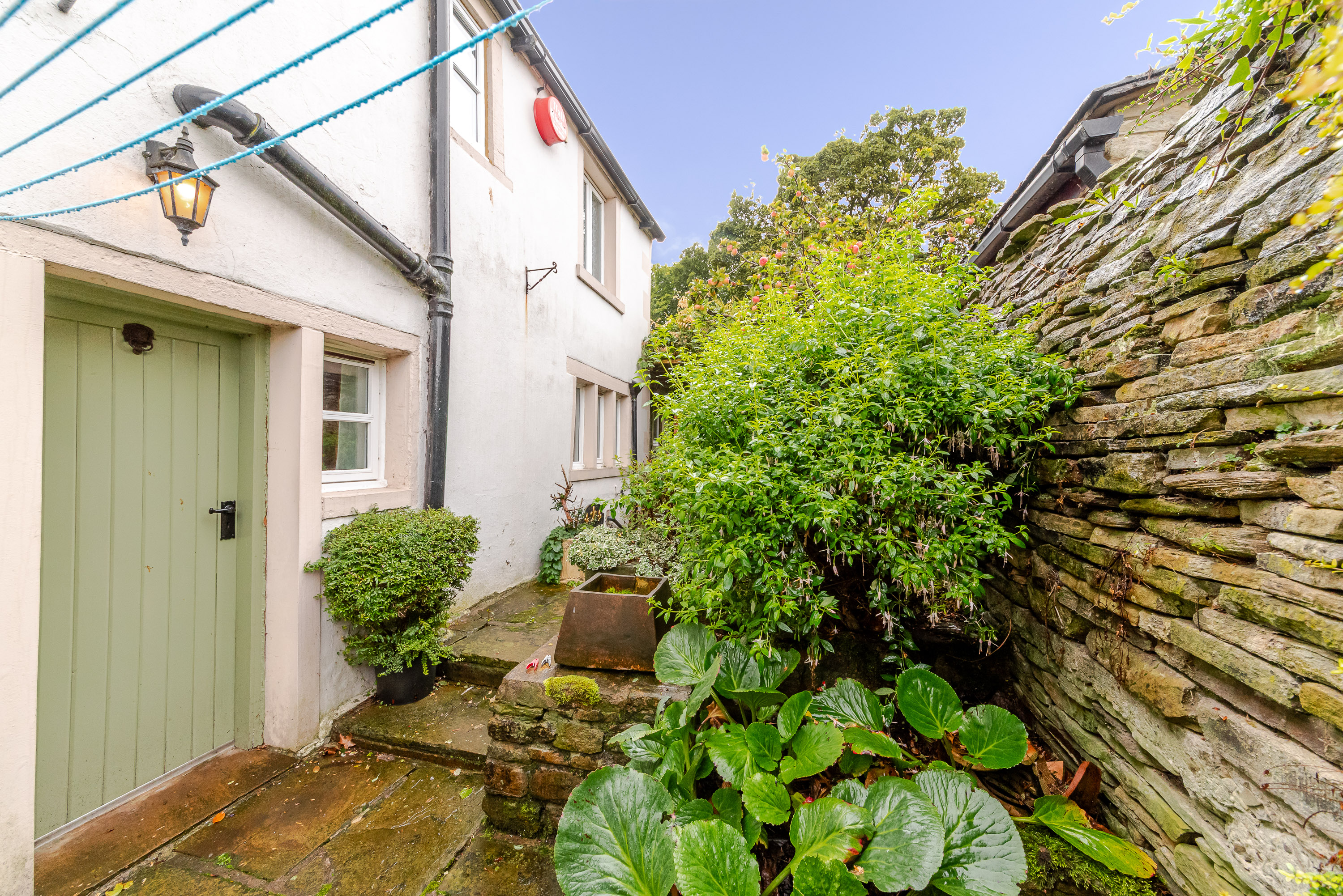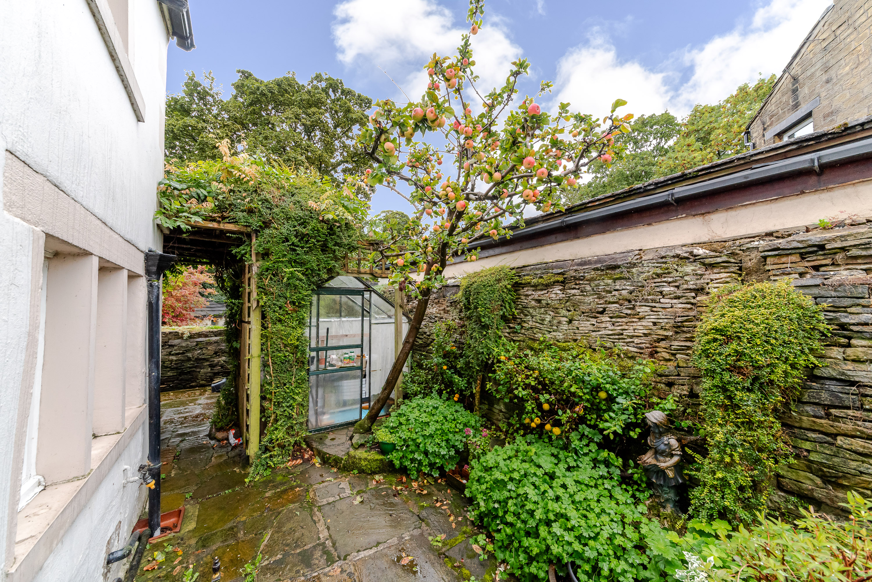 There is a dry stone wall with a central five bar timber hand gate which opens onto a crazy stone paved pathway leading to the front door, to either side of the pathway there is a lawned garden which enjoys a southerly aspect and is screened by trees and shrubs together with planted flowers. To the left hand side of the garage there is a stone flagged pathway leading to the rear with lovely Wisteria with timber trellising. Green house, stone flagged patio, apple tree and planted flowers and shrubs, outside cold water tap and a dry stone wall border.
