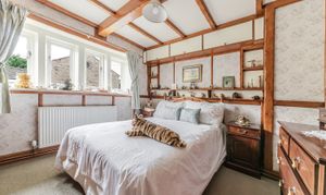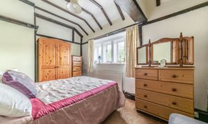 A double room situated adjacent to bedroom one and having a bank of timber and sealed unit mullioned windows looking out over the front garden, there is a beamed ceiling with ceiling light point and central heating radiator.
