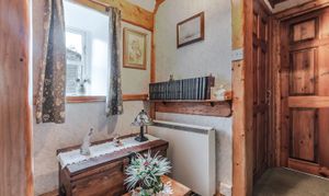 To the left hand side of the cottage there is a twin timber five bar gate which opens onto a stone flagged driveway which provides off road parking and in turn gives access to an attached garage. Garage is 16'3" x 9'8" with twin timbers doors together with a timber courtesy door to the rear with adjacent timber and sealed unit double glazed window. There is power, light and a wall mounted Viessmann gas fired central heating boiler.