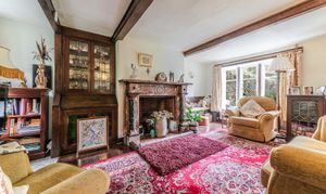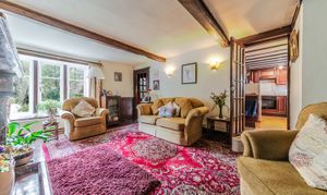With timber panelled and leaded stained glass door, there is a beamed ceiling with ceiling light point, exposed polished and stained floor boards and staircase rising to the first floor. From the lobby there are timber and glazed doors leading to the living room and dining room.