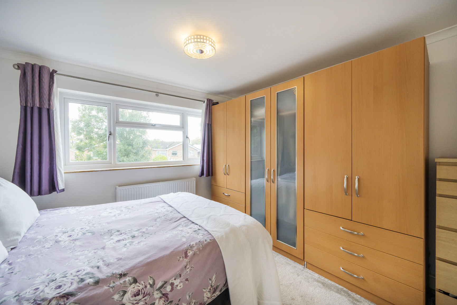 Bedroom Two is a comfortable double room, thoughtfully designed with an alcove wardrobe area that provides convenient space for hanging clothes and accommodating a chest of drawers. The room is bright and versatile, making it ideal as a guest room or teenager’s space to study and sleep.