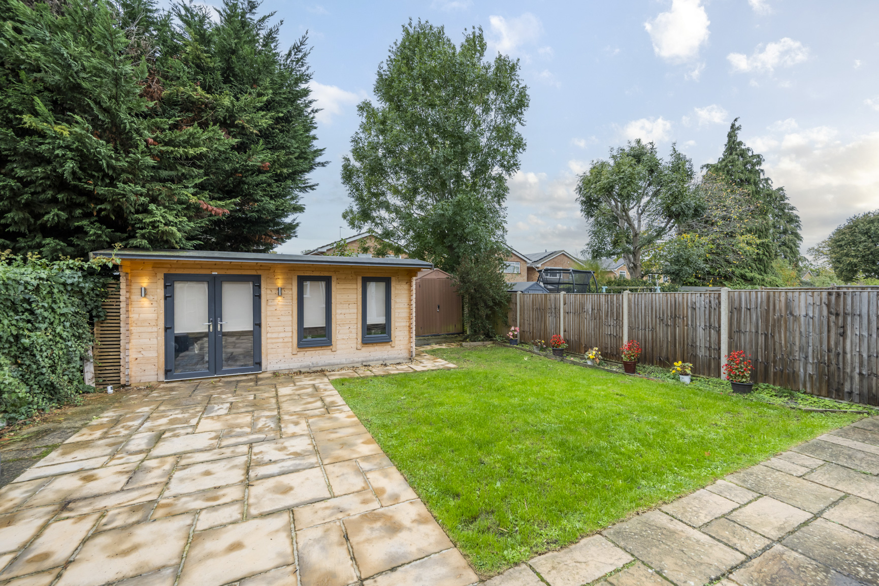The property benefits from a neat rear garden, offering a versatile blank canvas for landscaping or family play. A patio area provides the perfect setting for al fresco dining and entertaining, while a storage shed ensures practicality. Convenient rear access to the garage adds further ease for day-to-day living.