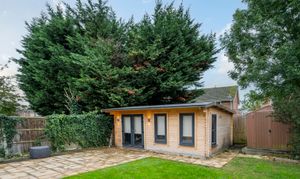 A standout feature of the garden is the beautiful log cabin, constructed from high-quality wood and filled with natural light from its plentiful windows. Perfect as extra living space, a home gym, or office, it comes equipped with electricity, lighting, and spotlights, and even has room to install a bar. This versatile structure enhances the functionality of the garden while maintaining its aesthetic appeal, creating an additional space to enjoy year-round.