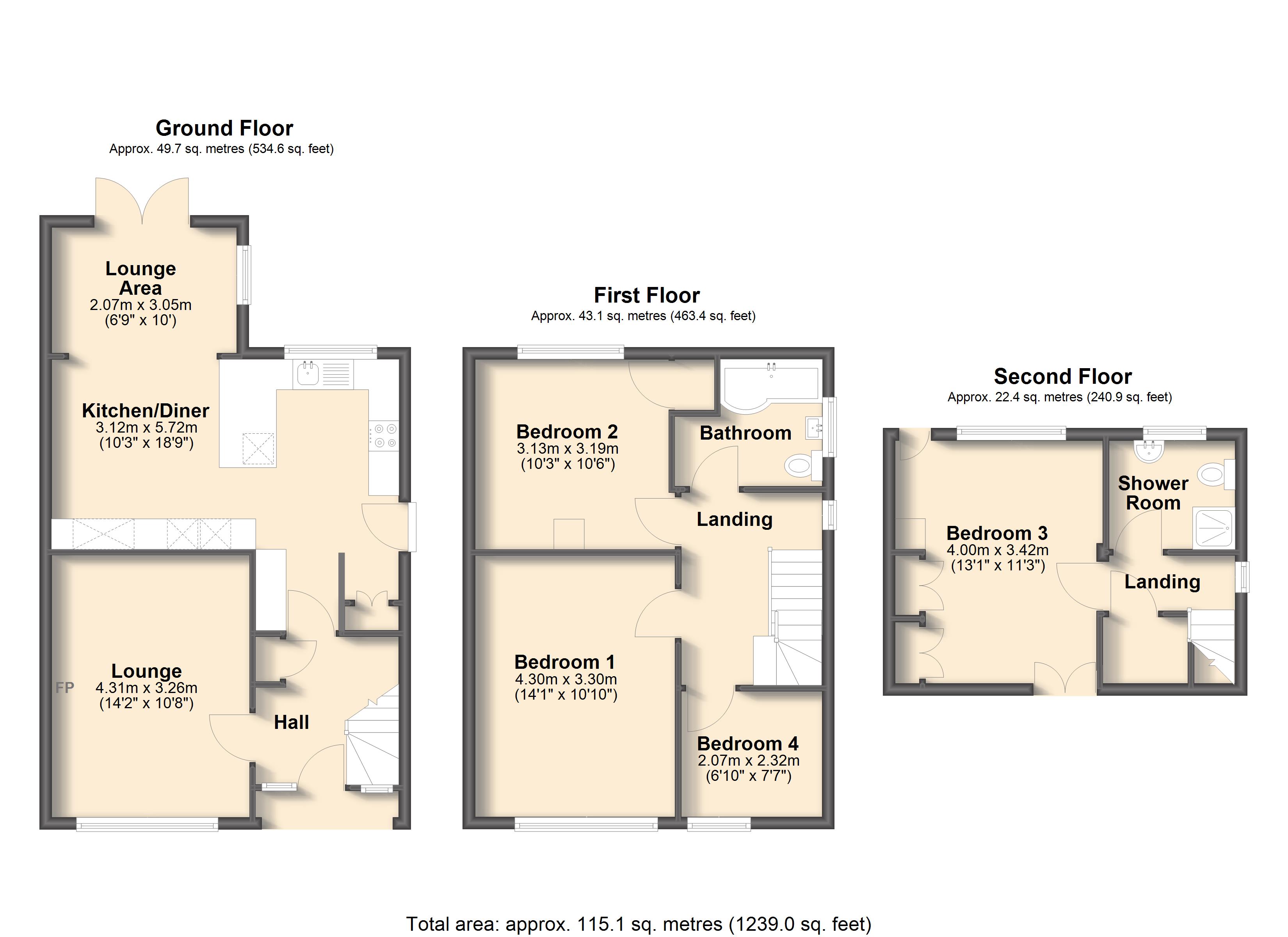 This deceptively spacious semi-detached house presents a rare opportunity to own a fantastic four-bedroom property overlooking playing fields to the front. Upon entering, you are greeted by a spacious lounge featuring a charming feature fireplace, perfect for cosy evenings with family and friends. The highlight of this home is the fantastic open-plan kitchen/diner living room, complete with patio doors leading out to the low-maintenance enclosed rear garden. The modern fitted kitchen boasts sleek granite worktops and ample storage. The first floor hosts a family bathroom, while a separate second-floor shower room provides added convenience and practicality.
