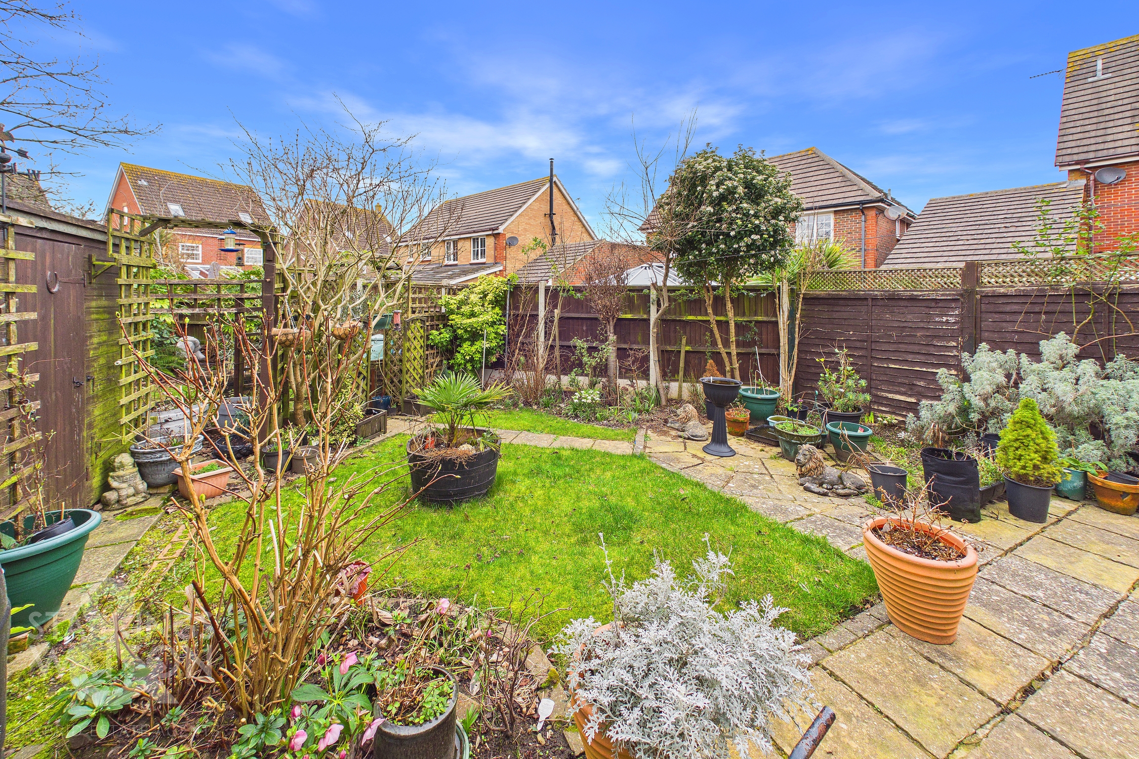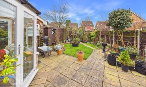 THE GREAT OUTDOORS The rear garden is fully enclosed to both sides and the rear with timber panel fencing whilst a multitude of colourful planting beds add vibrancy to the outside space. A large flagstone patio creates the ideal seating area whilst lawn takes over towards the rear of the garden where a secret planting bed can also be found.