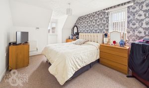 The first floor landing splits to grant access into the first three of the bedrooms within the home with the first bedroom coming directly ahead to the right hand side benefiting from built in wardrobes whilst the first of the well proportioned doubles sits just to the left of this again overlooking the rear gardens with double built in wardrobes and the first of three en-suite bathrooms complete with a fully tiled surround and low level radiator. The smallest of the bedrooms within the home sits towards the front of the property ideal as a single bedroom or nursery, however currently used as a home office space. The largest of the bedrooms on this level again, overlooks the front of the home, with a large open carpeted floor space suited to a double bed with further storage solutions and the second ensuite shower room complete with corner shower unit. Also found within this floor is a three piece family bathroom suite much like the rest of the home, the space is generously sized with a predominantly tiled surround. The second floor landing splits in each direction to take you into two further bedrooms with the first of two incredibly well proportioned double bedrooms coming to the right hand side occupying a multi facing aspect. The room is flooded with natural light with part vaulted ceilings hosting Velux windows. The current owners altered this space where an ensuite was previously accessed however turned into a walk in wardrobe to fit current needs. On the adjacent side of the property the larger of the bedrooms is on offer again with part vaulted ceilings built in wardrobes and the third ensuite shower room with velux window fitted within the vaulted ceiling.