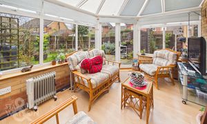 To the left of these stairs, the three main living spaces all interlinked with one another initially offering an 18’ sitting room laid with all carpeted flooring leaving more than enough room for a potential choice of layout of soft furnishings whilst a set of glass panelled wooden French doors open into the formal dining suite which in turn also links back into the kitchen. Due to the layout and position of these rooms, a more open plan feel could easily be designed if required. To the very end of the home, a uPVC double glazed conservatory gives the perfect spot to overlook the fully enclosed rear garden with French doors taking you onto the rear garden patio. To the left of the home on the ground floor the garage was historically converted to create a further living space where, Initially accessed from the driveway, an open living space combines a sitting room and kitchen complete with plumbing leading through to a walk in shower room with bathroom fitted with new carpets in 2025 which in turn links back through to the conservatory space.
