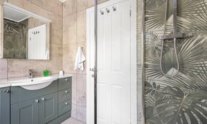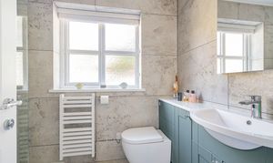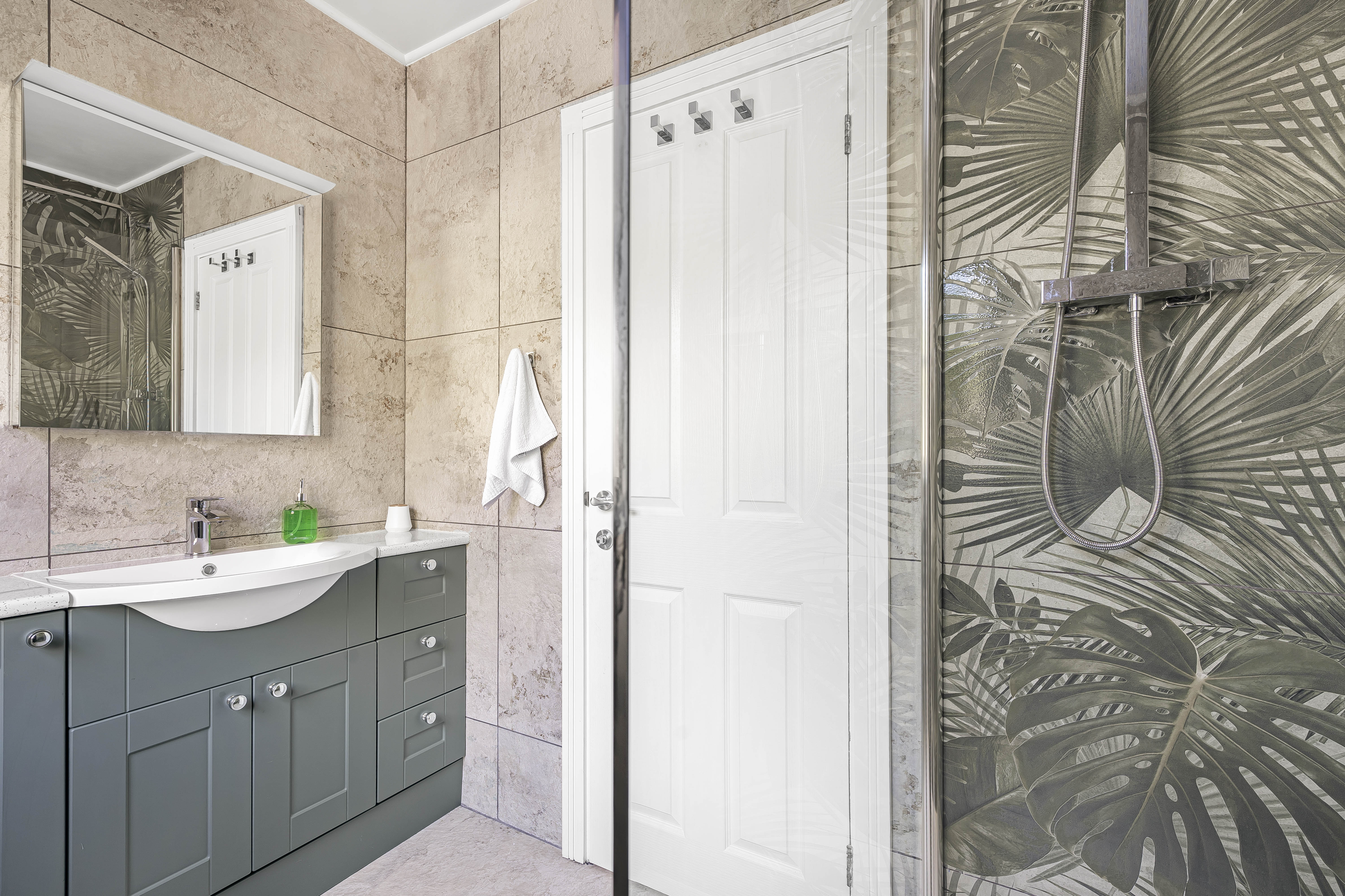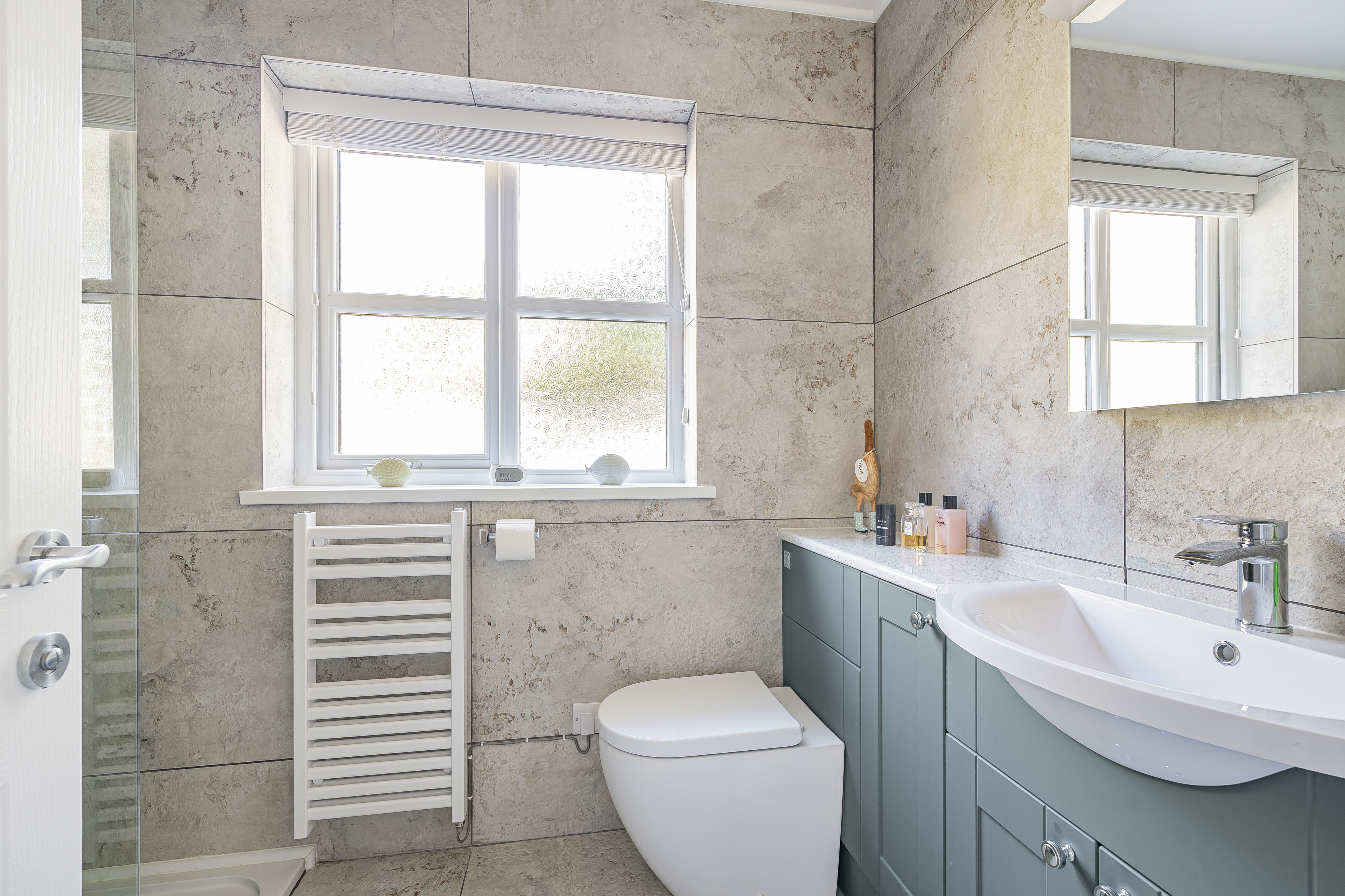 The family shower room is again high quality with shower cubicle with feature tiling, tiled floor and walls, W.C and wash hand basin unit with storage under and heated towel rail.