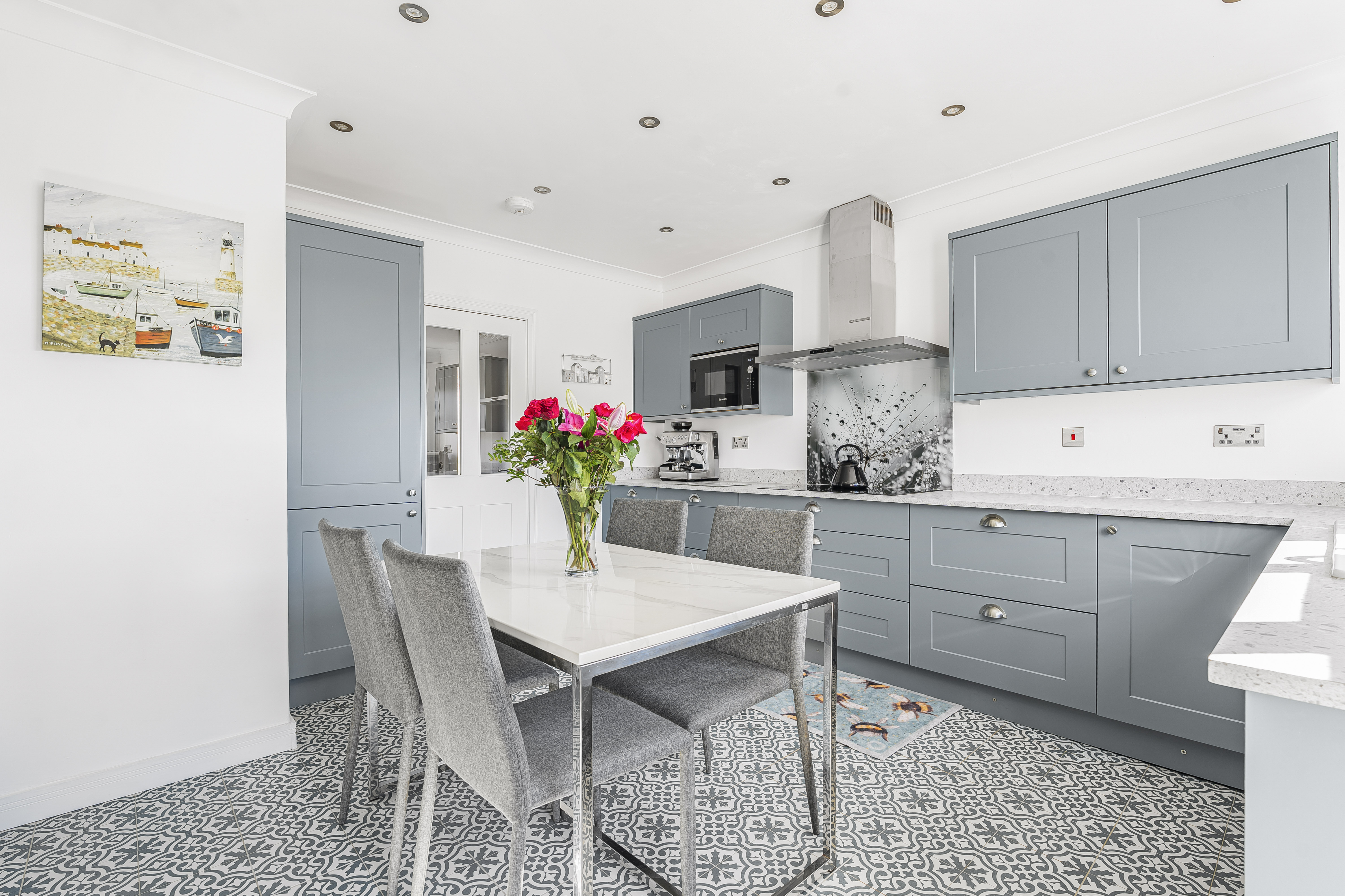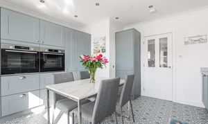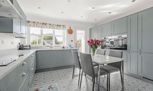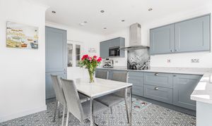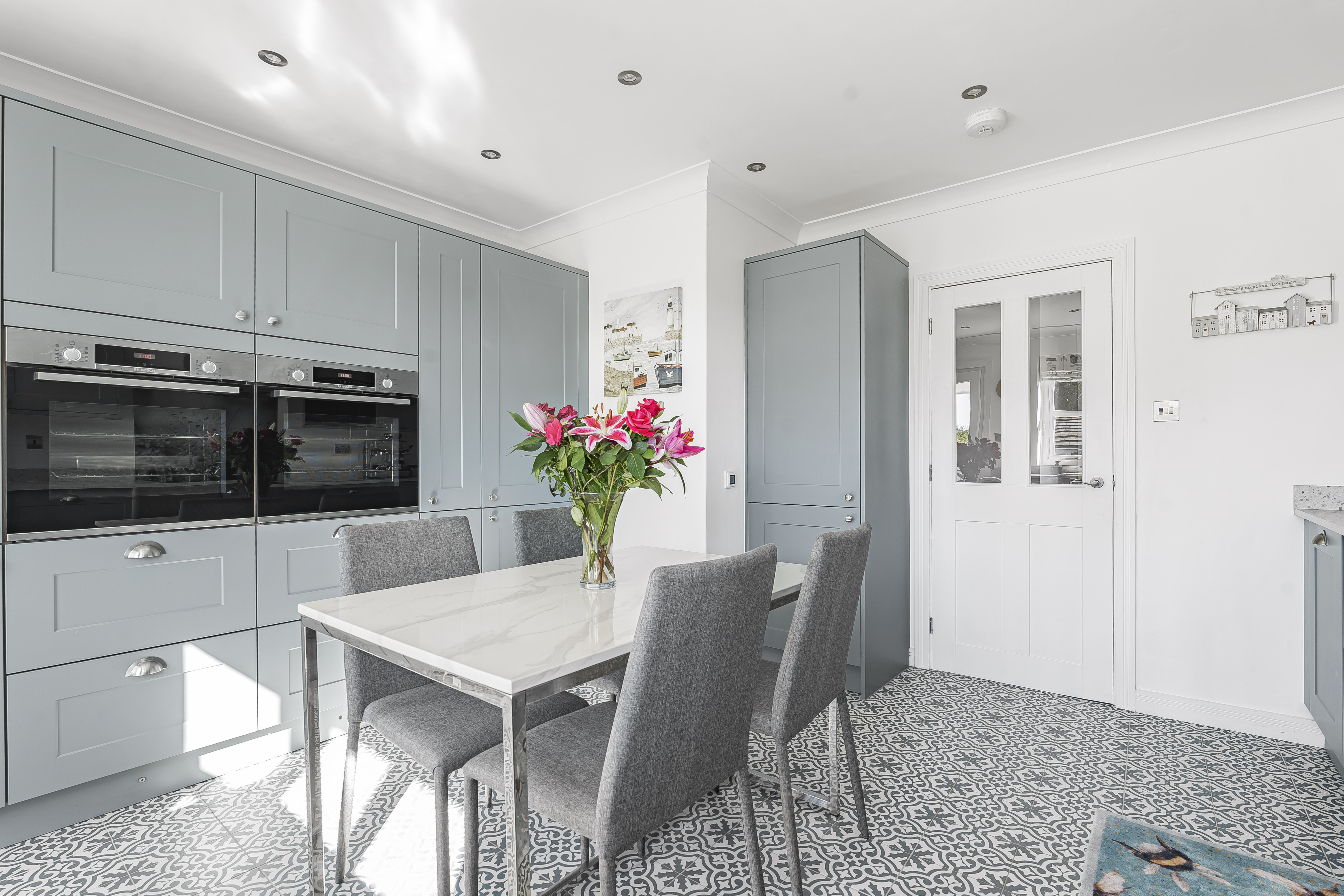 The kitchen/breakfast room is sure to impress, with underfloor heating, space for breakfast table and door out to the rear garden. The kitchen comprises of a good range of high-quality shaker style base and wall mounted storage cupboards, a range of pan drawers, with plenty of storage and worktop space, induction hob with extractor over, two built in ovens, integrated fridge/freezer, dishwasher and washing machine inset sink with mixer tap.