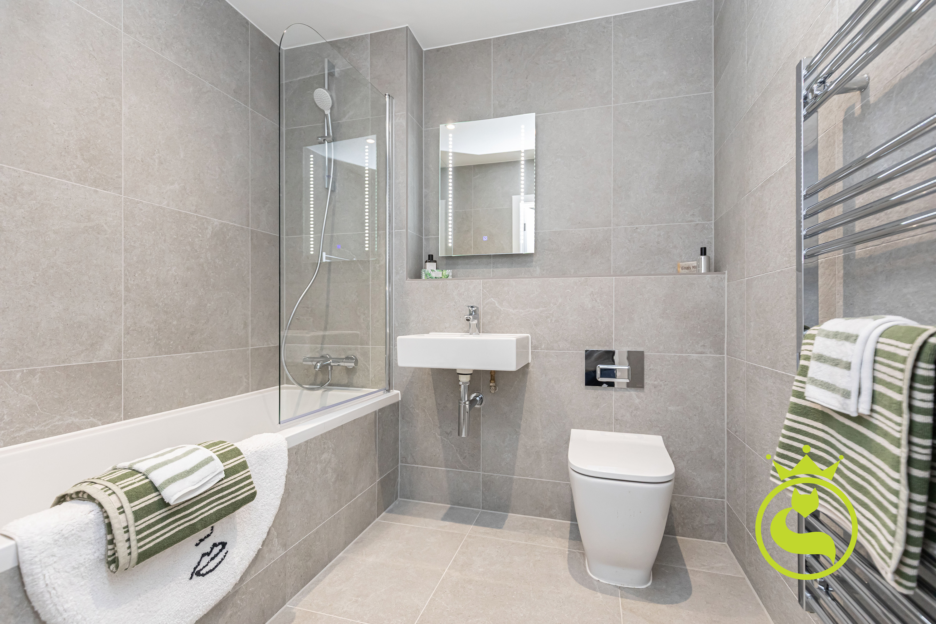 Moving into the apartments, the entrance hallways have luxury Amtico flooring and built in storage cupboards one of which houses the EDEL air source water cylinder offering eco-friendly living. If you enjoy entertaining & socialising you will love the generous open plan kitchen/lounge/diners. Local kitchen designers ‘Caro’ have cleverly designed each kitchen using Egger finishes providing well appointed units together with AEG integrated appliances. The Opus white quartz worktops are the perfect finishing touch and the continuous luxury Amtico flooring completes the room. The remainder of the room allows plenty of space for living and dining furniture with the large windows allowing the natural light to flow through. There are two spacious double bedrooms and two well-appointed bathrooms (en-suite to master bedrooms). The stylish bathrooms have luxury Italian porcelain tiling by Pietra Casa.