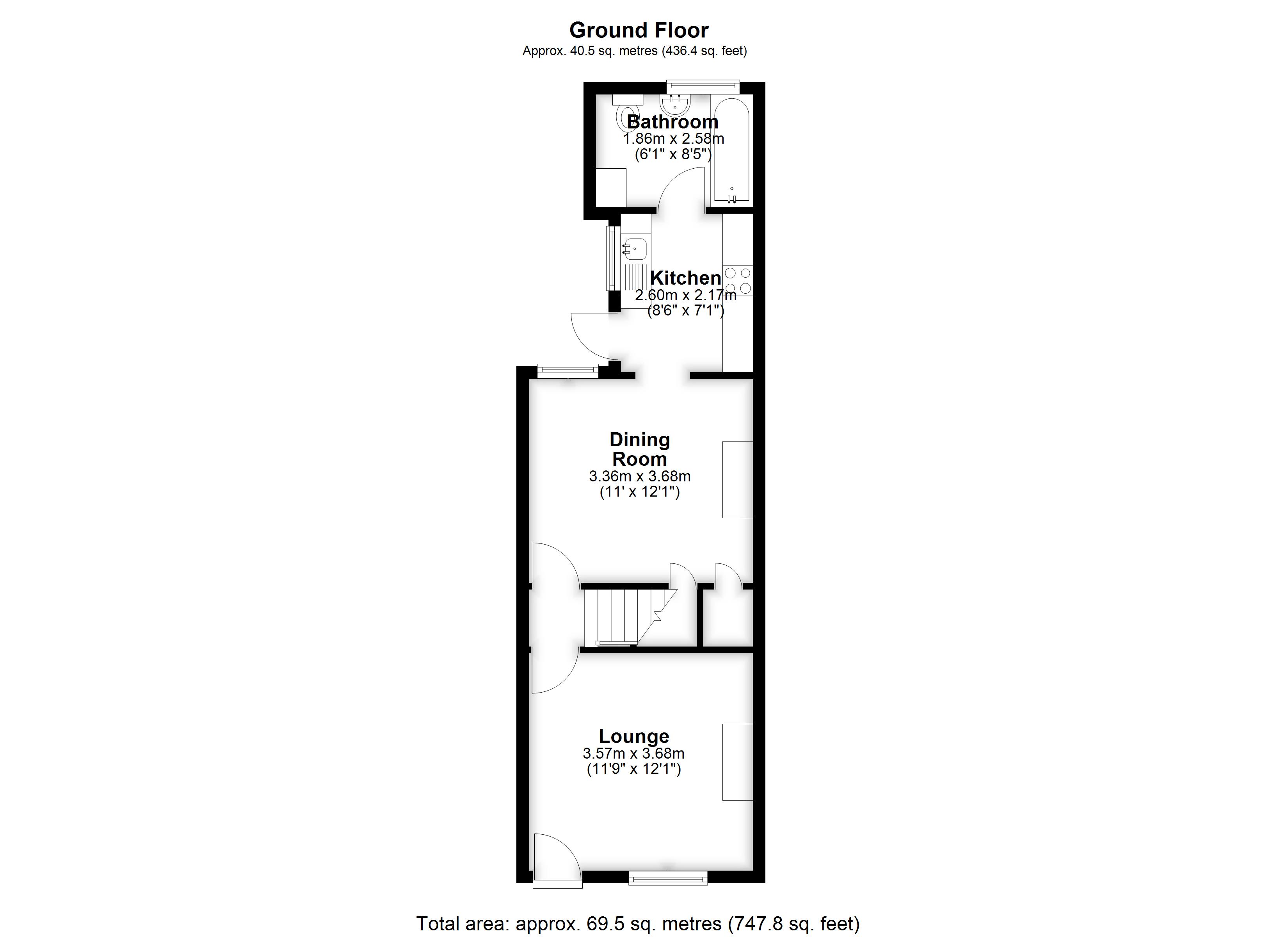 Kitchen 2.60m (8'6") x 2.17m (7'1")