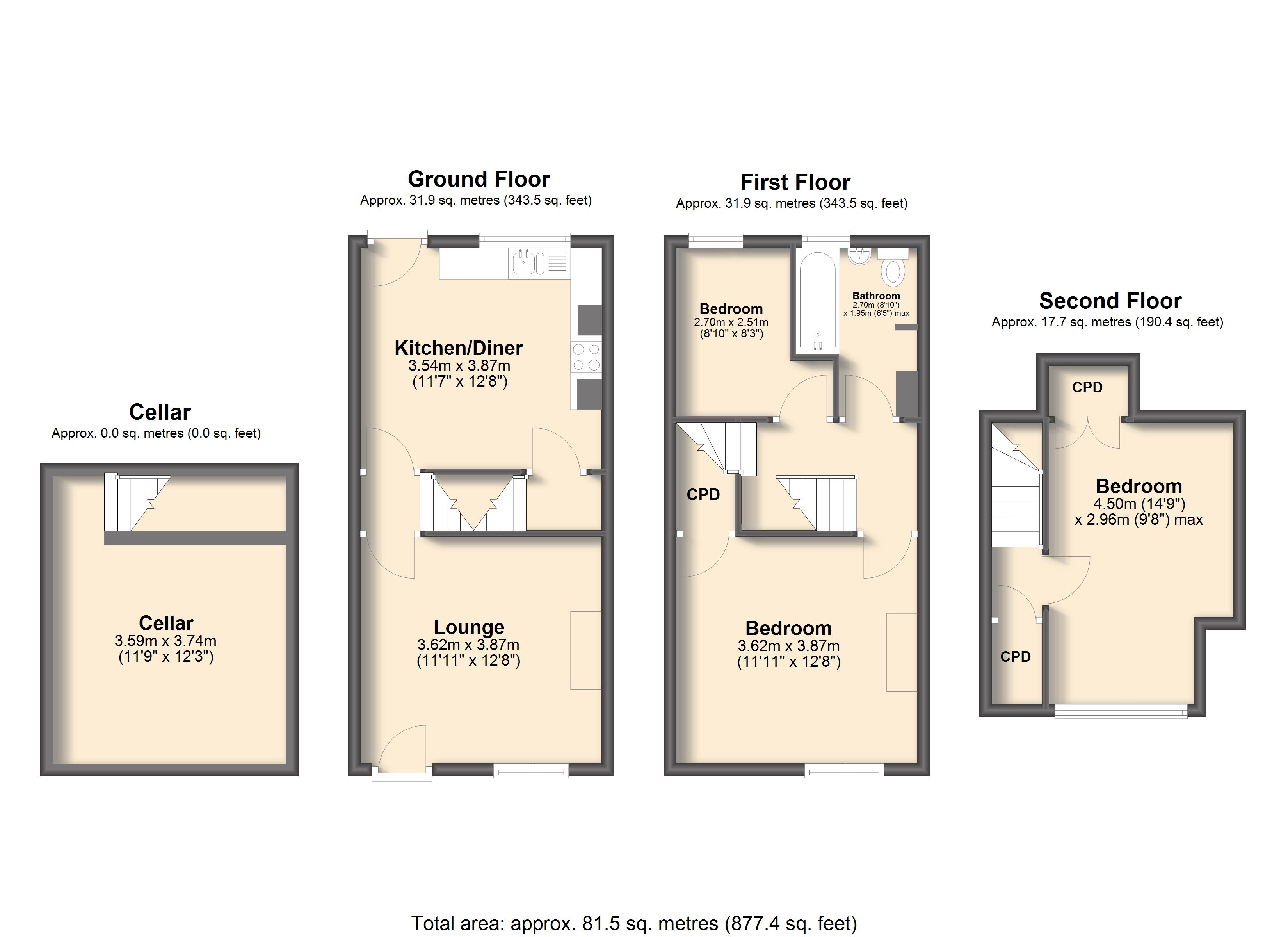 Upstairs, the property boasts two generous double bedrooms, each benefitting from fitted storage, while the third bedroom offers flexibility as a single room or home office, ideal for remote working or study. The bathroom is fitted with a three piece suite and an overhead shower. Additional practical features include a useful cellar offering extra storage space and the potential to fully covert, subject to consent.