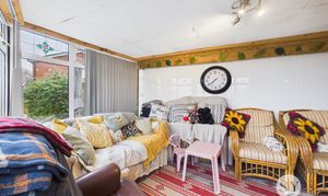 Tiled flooring, uPVC double glazed sliding doors to garden, frosted window to inner hallway, panel radiator, TV point.