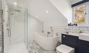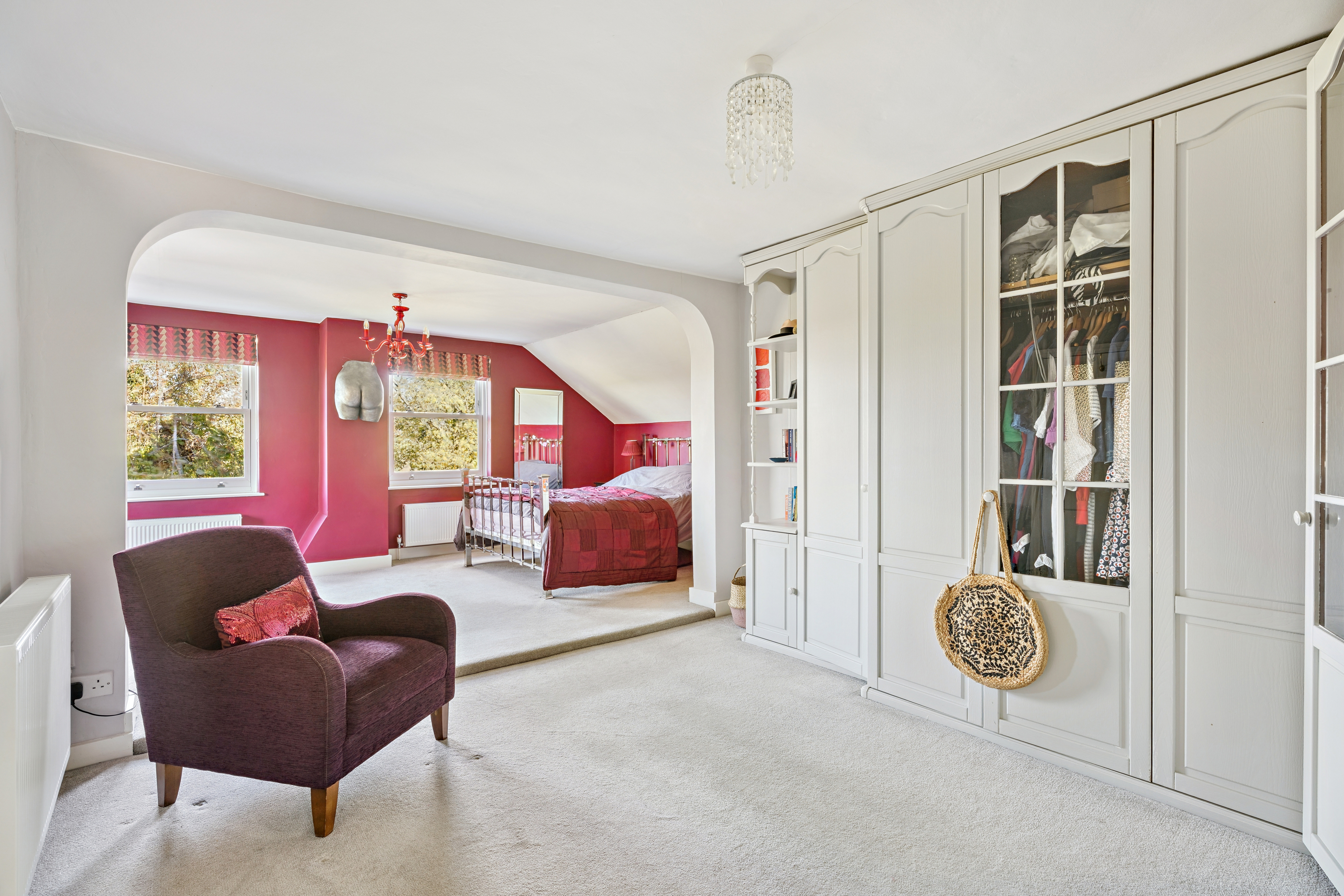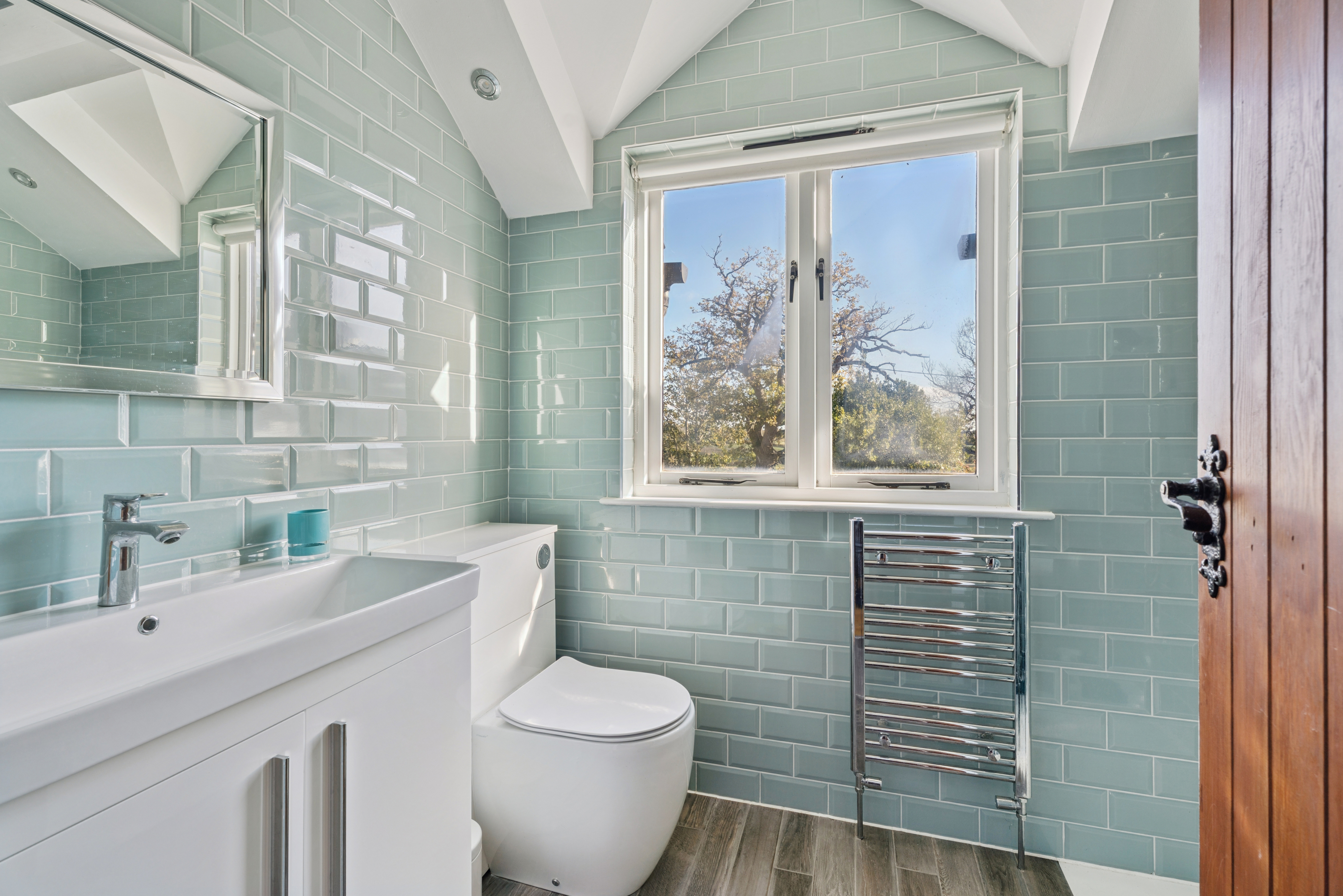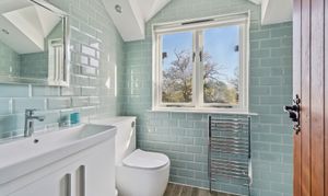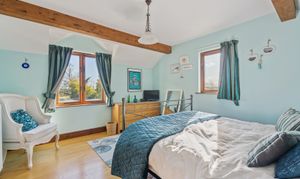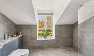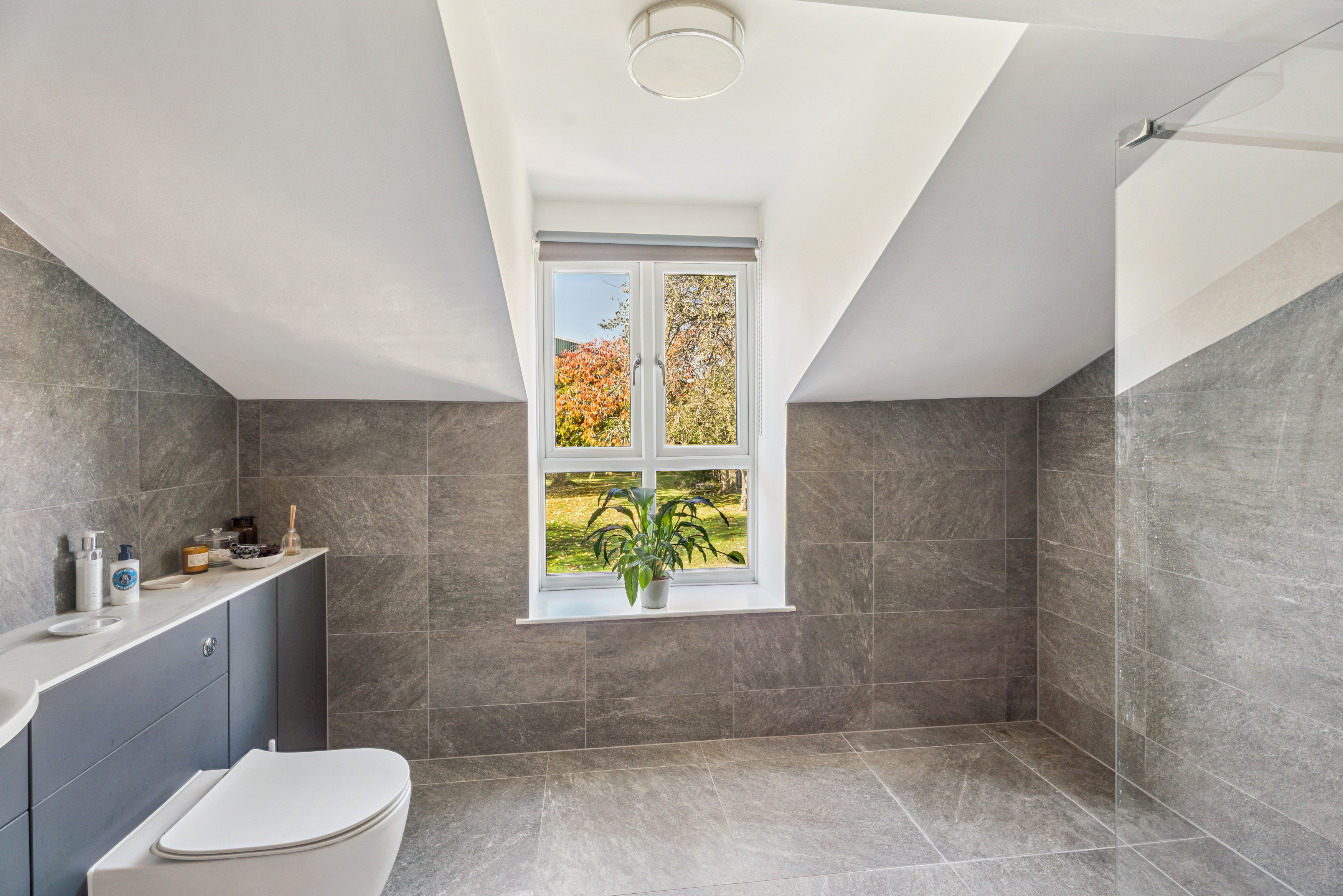The principal suite is an elegant and spacious retreat with dual-aspect windows picture framing the garden and surrounding countryside. A dressing area with ample built in storage leads through to a luxurious en-suite shower room. Finished with stylish floor to ceiling tiles, the shower room features a contemporary finish with a large walk-in shower adding practicality and elegance to the principal bedroom.