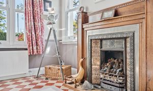 The front door opens into a welcoming entrance hall, where light pours in and immediately frames the home’s inviting character. To the right lies the snug — an intimate, relaxed retreat with soft tones and a homely feel, perfect for reading or quiet evenings by the feature log burning fireplace.