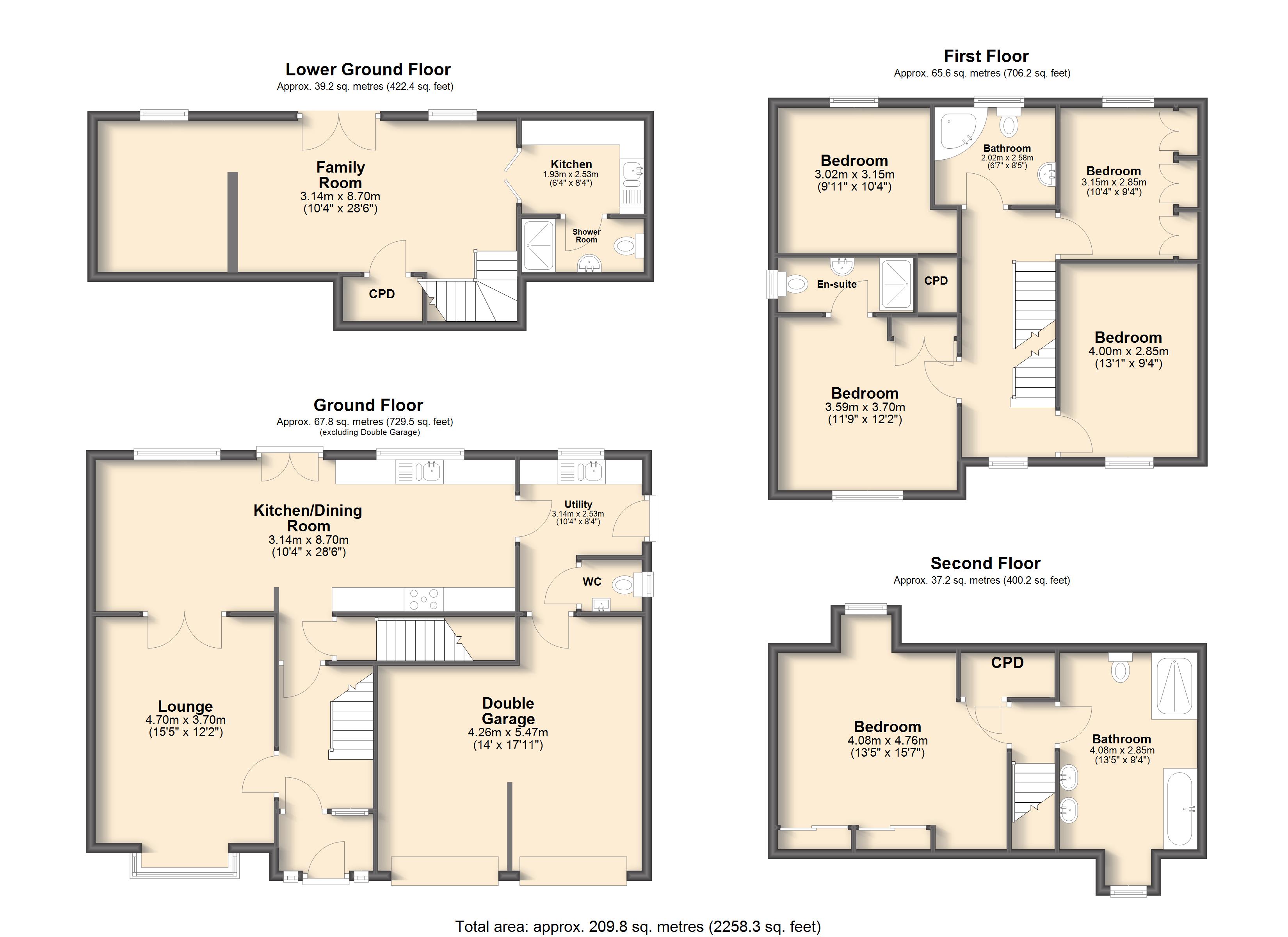 Upon entering, you are greeted by a bay-windowed lounge with a feature fireplace. The heart of the home is the open-plan kitchen-diner, complete with granite worktops, integrated appliances, and a range cooker, providing a superb space for bringing the whole family together. A fitted utility room and a convenient ground-floor W.C. add further practicality. The lower ground floor boasts a versatile family room with its own kitchen and shower room, offering excellent potential for guest accommodation or a teenage suite. On the first floor, you will find four generous double bedrooms, one benefiting from an en suite, alongside a modern three-piece family bathroom. The second floor is dedicated to a principal bedroom, featuring fitted wardrobes and an adjoining four-piece bathroom. This well-proportioned home presents a fantastic opportunity for buyers to style to their own taste.