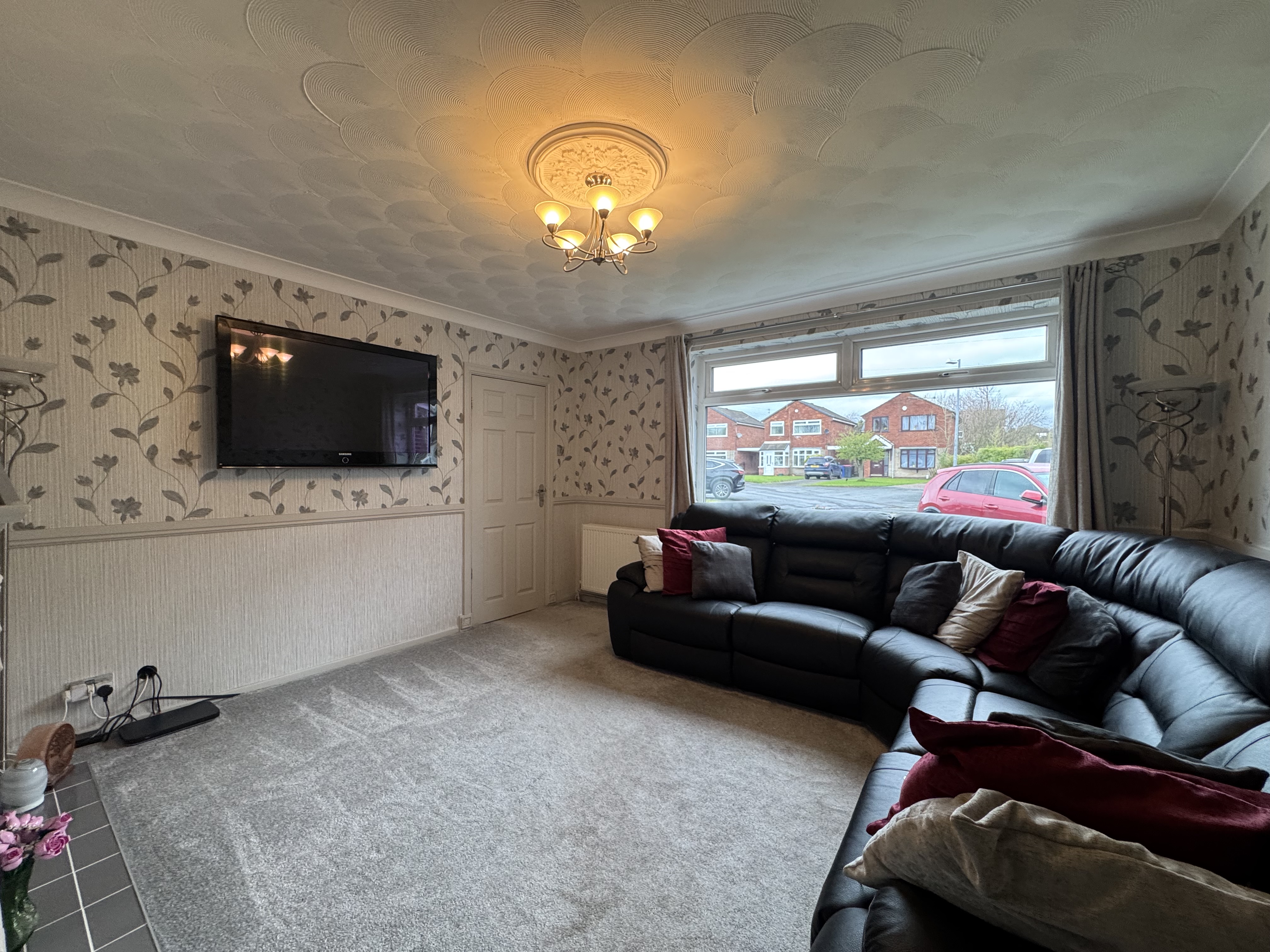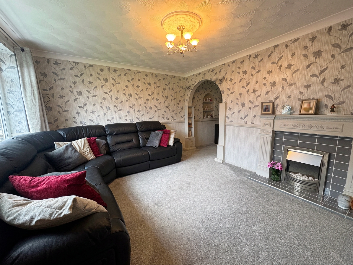 Upon entering, you are welcomed by a generous hallway that leads to a light-filled living area, thoughtfully designed for both relaxation and entertaining. The kitchen is well appointed with an integrated double oven, hob & extractor fan and ample storage, seamlessly connecting to the dining area, perfect for family meals or hosting guests. Each of the three bedrooms are well proportioned, benefiting from built-in wardrobes. The large family bathroom features a separate shower, bath, low level W.C and wash basin.
