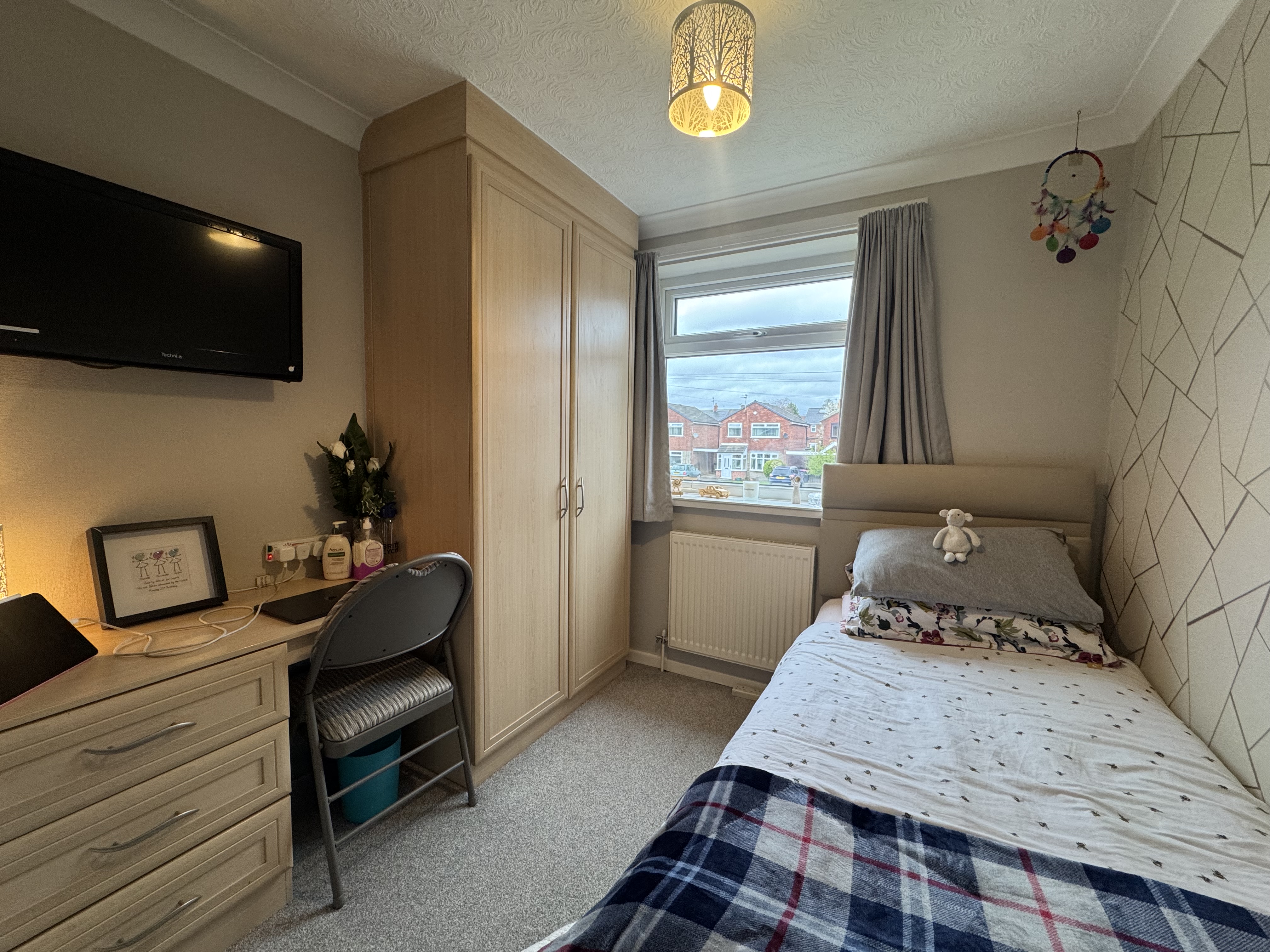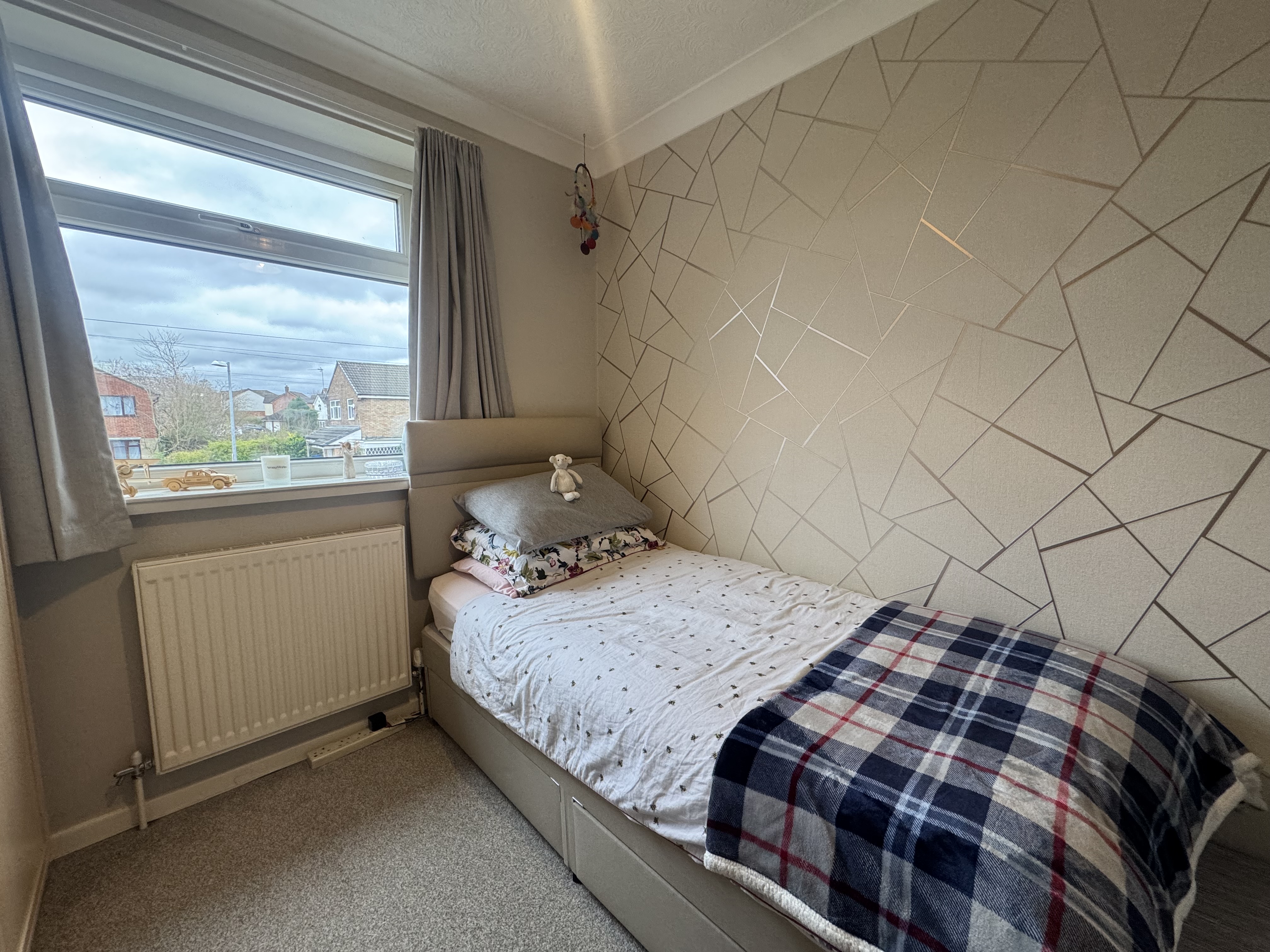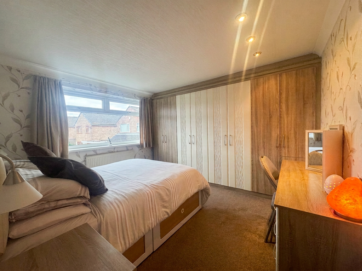 Third bedroom with window to the front elevation. Fitted wardrobes.