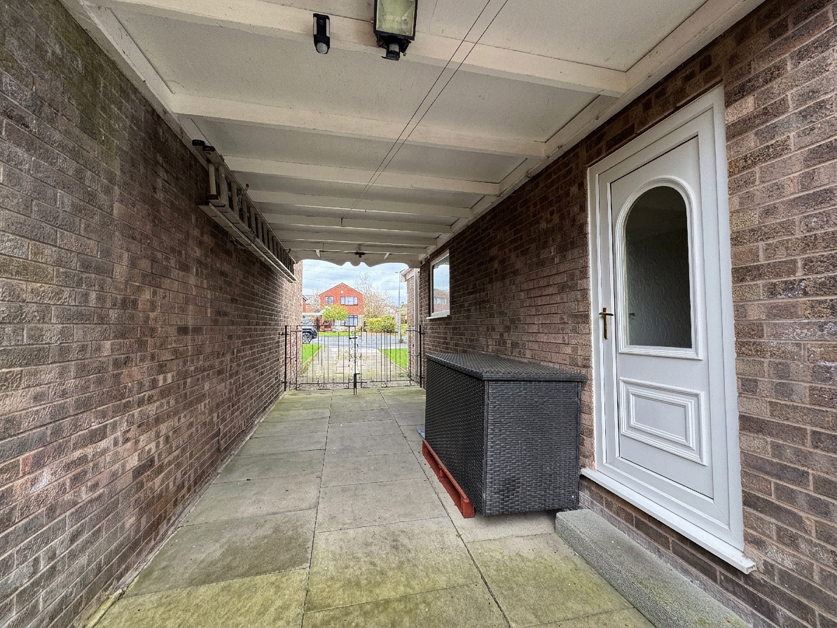 Driveway parking for multiple vehicles and a car port allowing easy access to the side door in poor weather conditions.