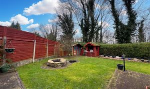 The deceptively spacious private rear garden (not overlooked) is a true highlight, featuring a charming pond, a summer house and a dedicated bar shed, offering a unique setting for outdoor entertaining and relaxation. Whether you are enjoying family gatherings, unwinding after a busy day or celebrating special occasions with friends, this garden is sure to impress. The home is further enhanced by driveway parking for multiple vehicles and a car port, providing both convenience and peace of mind for busy households.