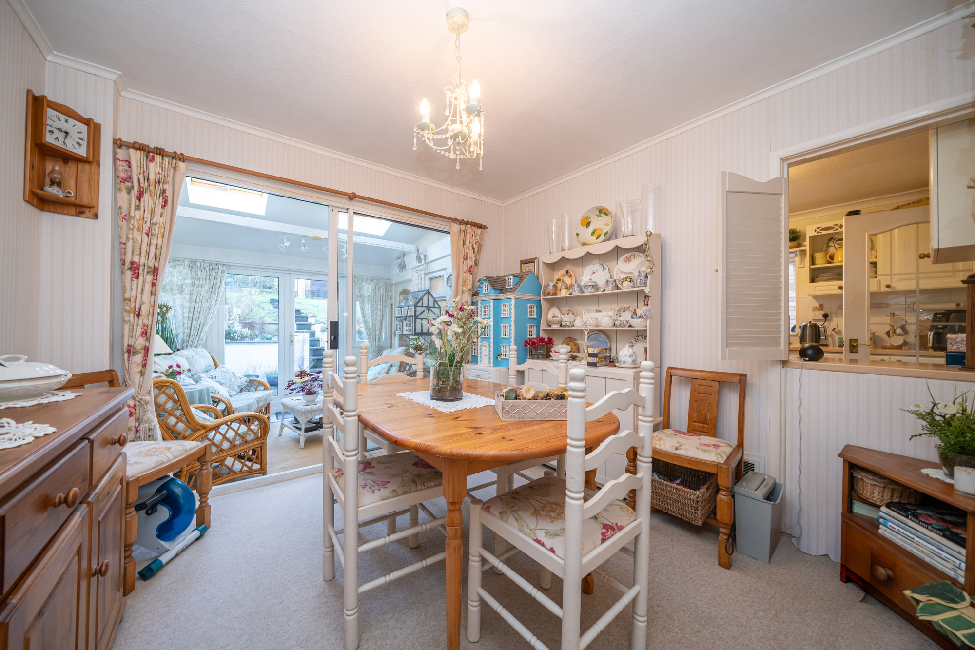 Extended to the rear and providing over 1,100 square feet of thoughtfully arranged living space, the property is set back from the road and benefits from a garage with a further parking space in front, ensuring ample parking and convenience for modern family living. Upon entering the home, you are welcomed by a bright entrance hallway which leads directly into a well-proportioned lounge, ideal for relaxing or entertaining guests. The separate dining room provides a dedicated space for family meals and special occasions, while the fitted kitchen is complemented by an adjoining conservatory, offering additional versatility as a breakfast area or informal sitting room. A ground floor WC adds further practicality for busy households.
