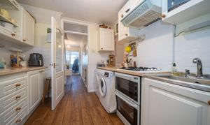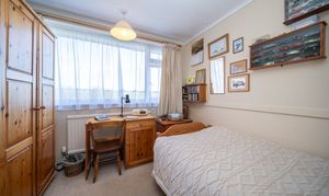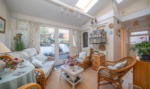 Upstairs, the property features three bedrooms, each providing comfortable accommodation and ample storage options, alongside a family bathroom. Throughout the home, an abundance of natural light creates a warm and inviting atmosphere, with the flexible layout ideally suited to both growing families and those seeking extra space for home working or hobbies. The property’s location, set back from the road, ensures a peaceful setting while remaining within easy reach of local amenities, reputable schools, and excellent transport links.