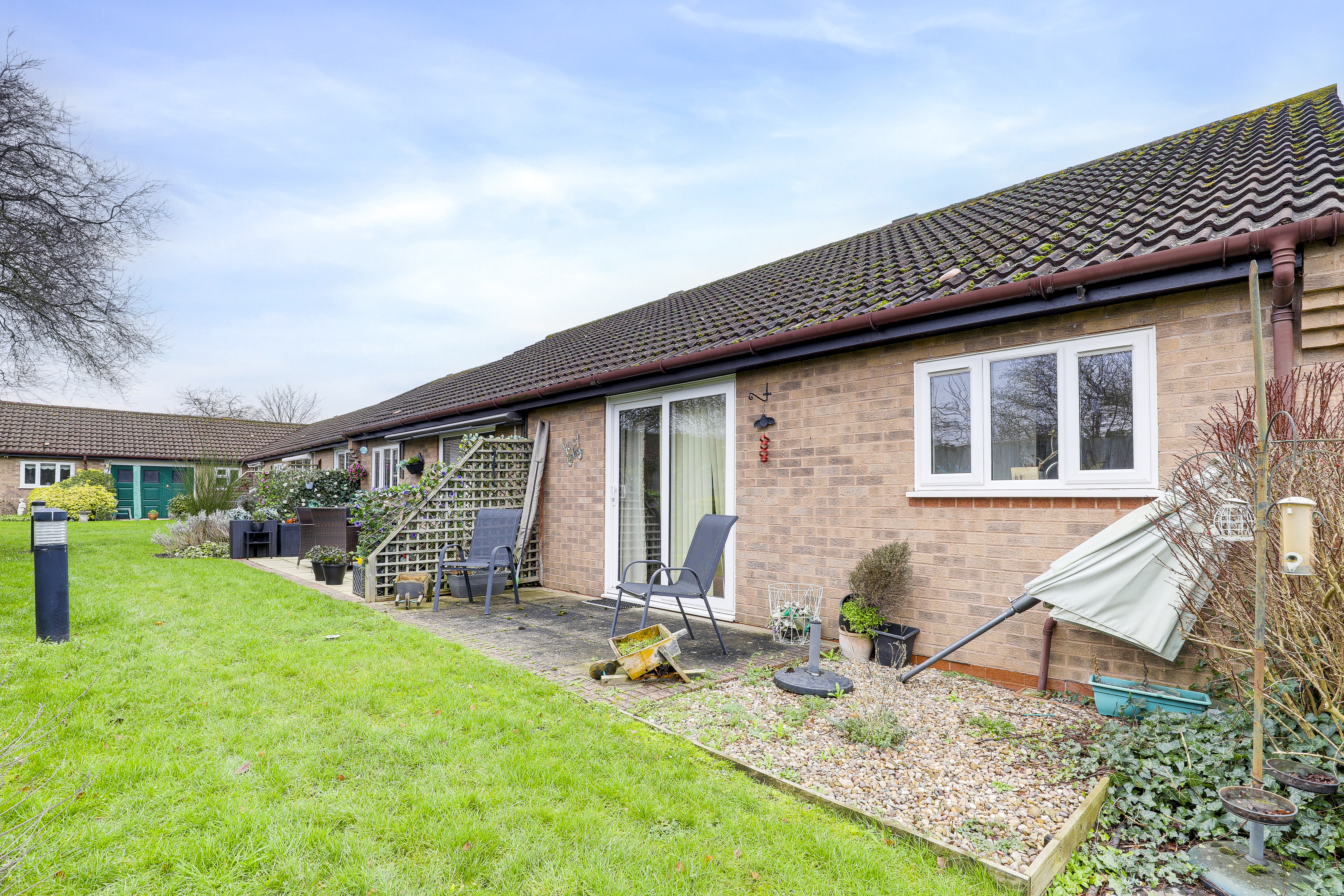 This well-presented two-bedroom mid-terraced bungalow is situated in a highly sought-after retirement development, offering comfortable and practical living accommodation for those seeking a peaceful lifestyle. The property is offered with no upward chain, making it an ideal choice for buyers looking for a smooth and efficient move. Internally, the bungalow features a living room that provides a relaxing space for day-to-day living, while the adjacent kitchen is fitted with a range of units and offers a pleasant outlook over the rear garden. There are two well-proportioned bedrooms, each offering flexibility for use as a guest room, study, or dressing room, depending on your needs. The three-piece shower room is conveniently located off the main hallway and is fitted with a walk-in shower, wash basin, and WC. The property further benefits from double glazing and electric heating throughout, ensuring comfort all year round. With allocated parking included, residents and visitors alike will appreciate the ease of access and convenience this provides. Outside, the bungalow enjoys a rear garden that is perfect for enjoying the outdoors. The garden features a gravelled area as well as a lawn that offers a pleasant green outlook. To the front of the property, there is a neat lawn that enhances the attractive kerb appeal of the bungalow and provides a welcoming approach for residents and guests. The development itself is well maintained, offering a tranquil setting with communal pathways, making it an appealing environment for retirement living. The location is particularly desirable, with local amenities, shops, and public transport links all within easy reach, ensuring that daily needs are conveniently met