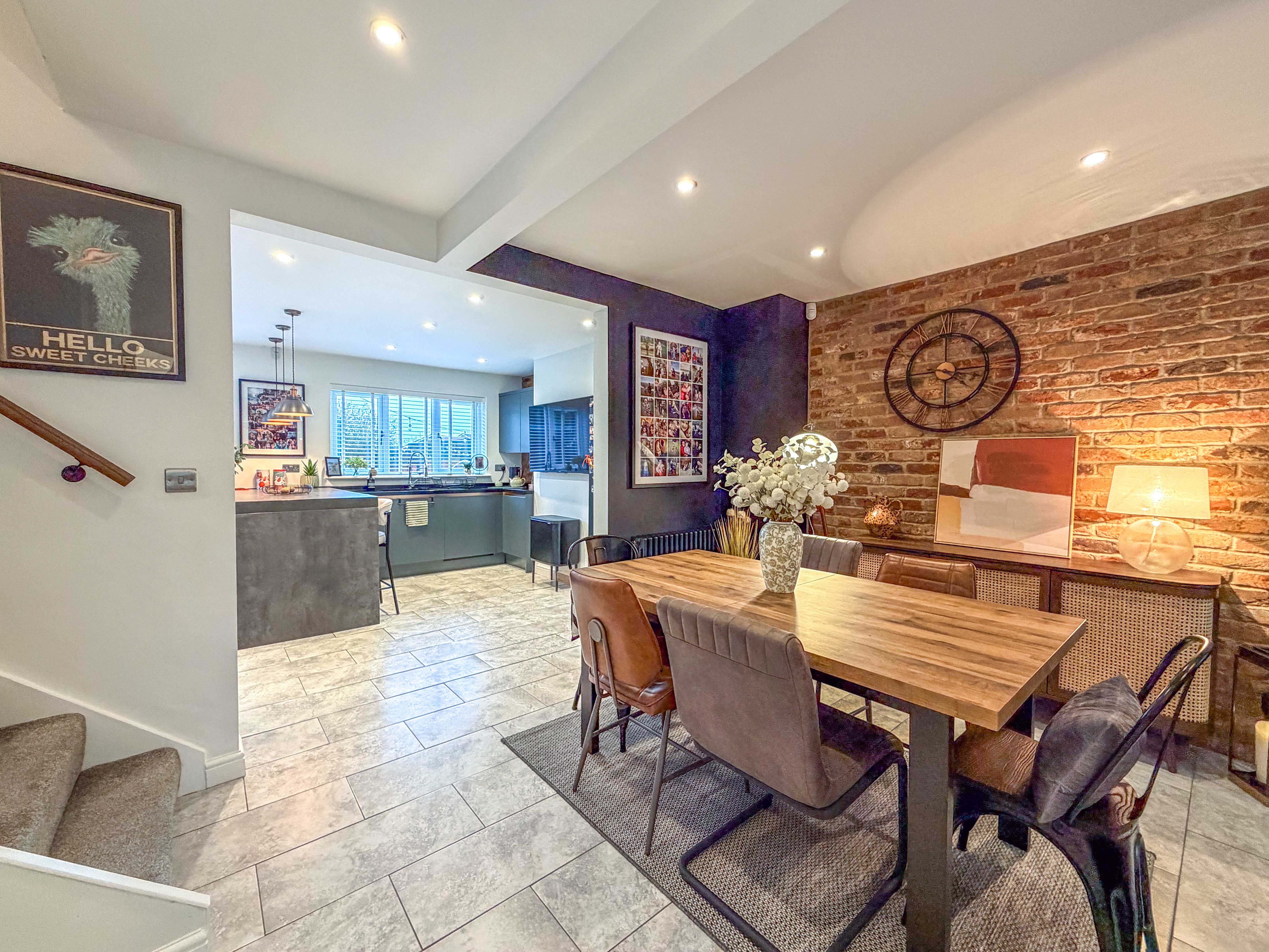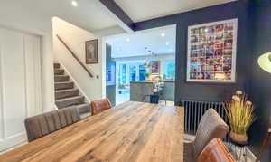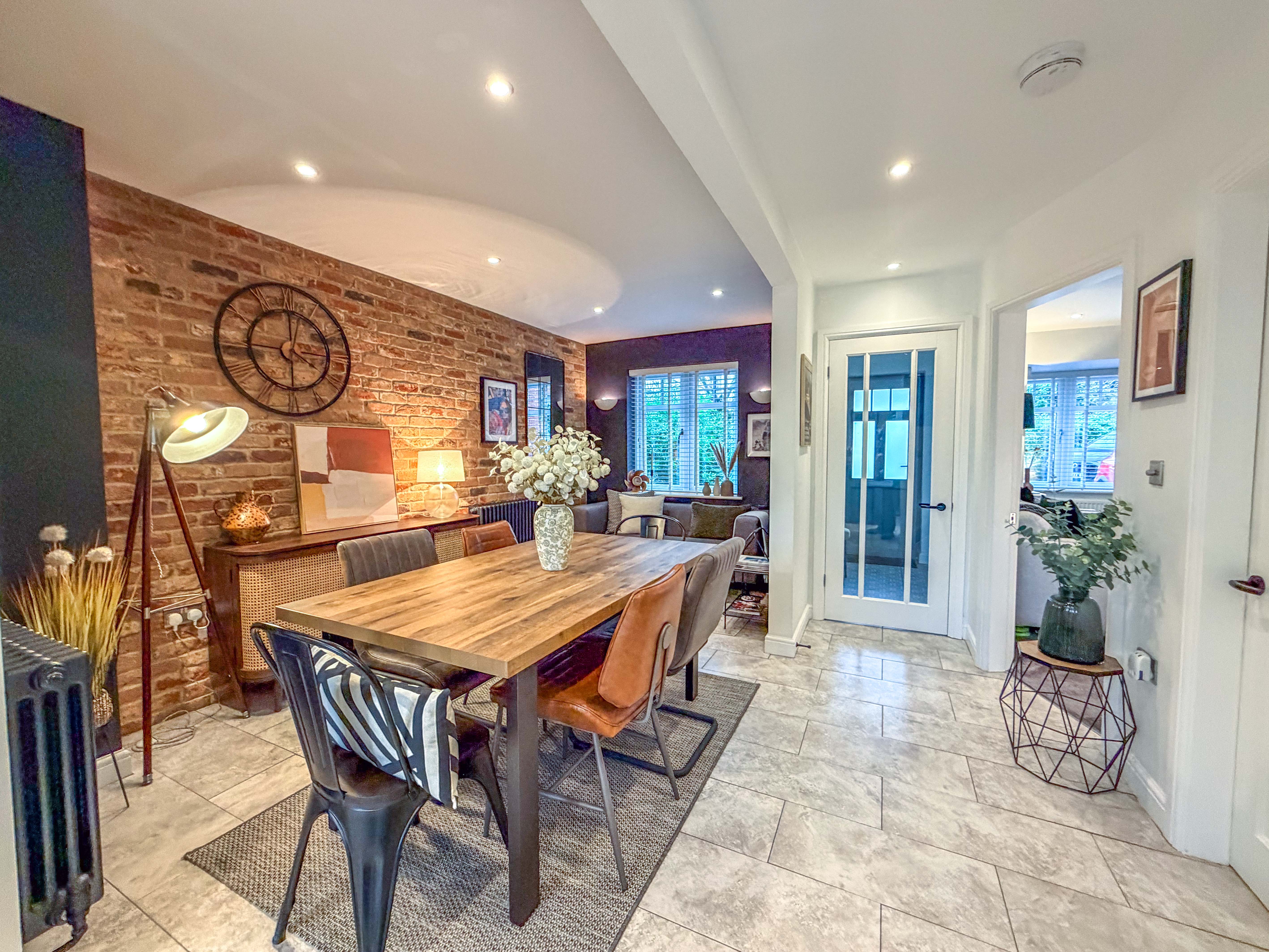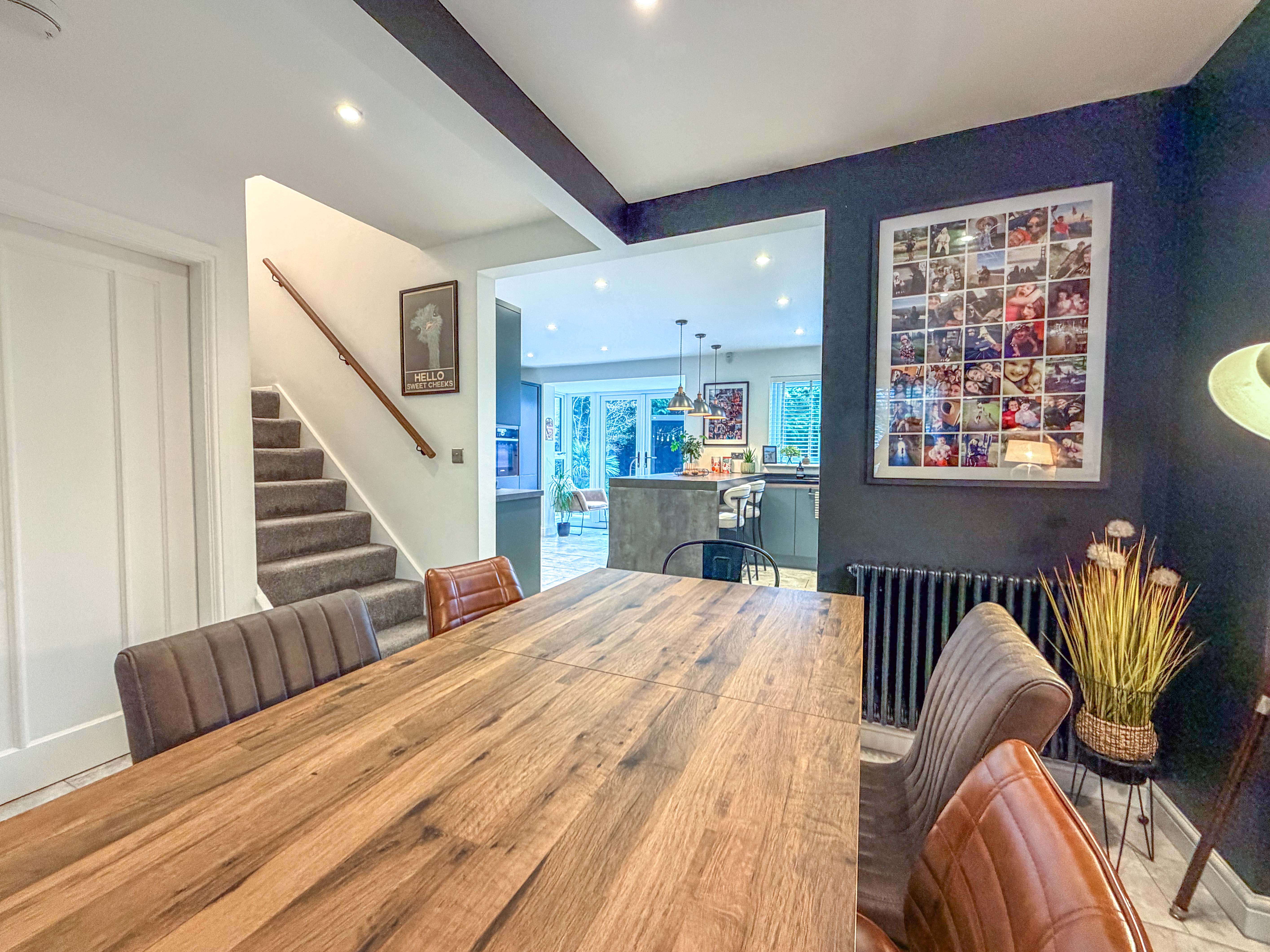 You are welcomed into the property via a front vestibule which opens into a spacious open-plan dining room. This sociable space forms the heart of the ground floor layout and provides an ideal setting for family meals, entertaining guests, or hosting larger gatherings, with a natural flow through to the principal reception rooms.