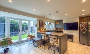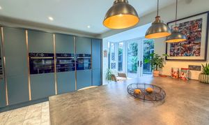Double French doors open directly onto the rear patio, allowing natural light to pour into the room and creating a seamless transition between the kitchen and the garden. During the warmer months this feature is perfect for entertaining, allowing gatherings to effortlessly extend outdoors and truly bringing the outside in.